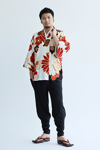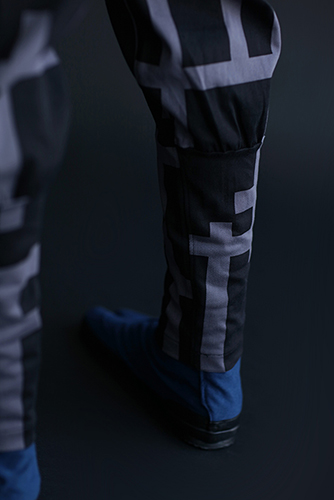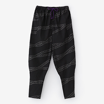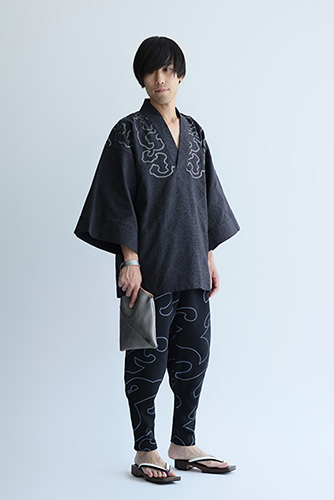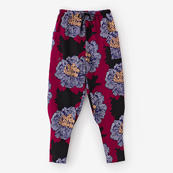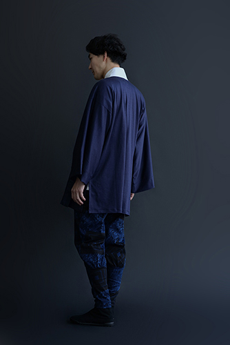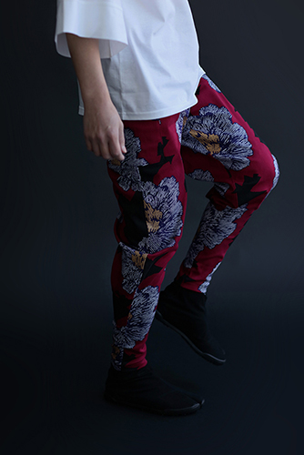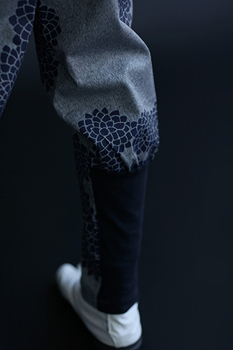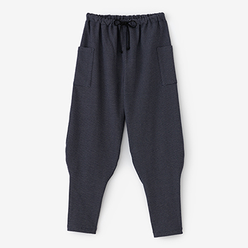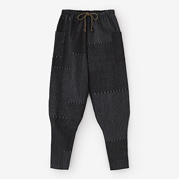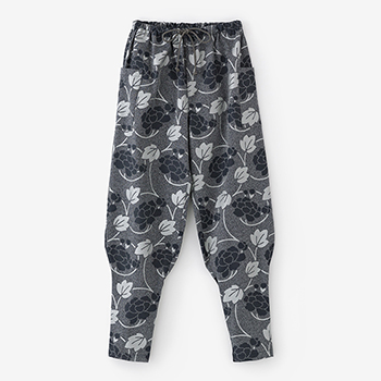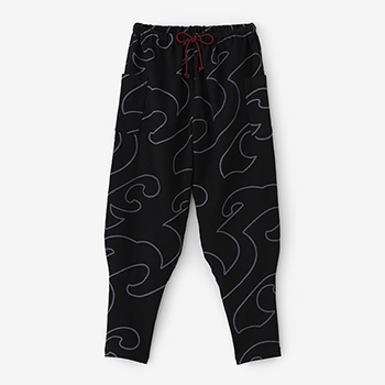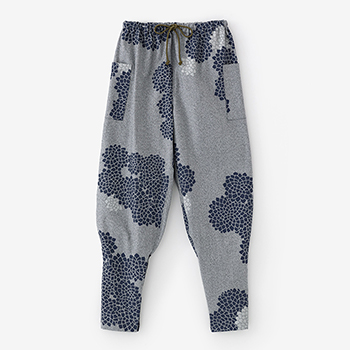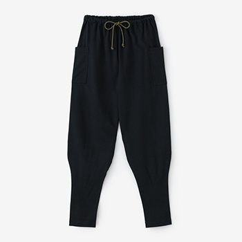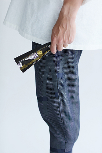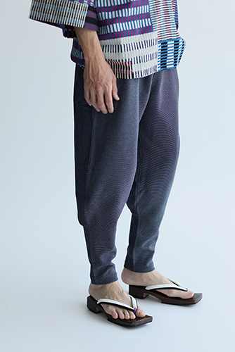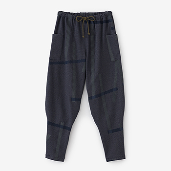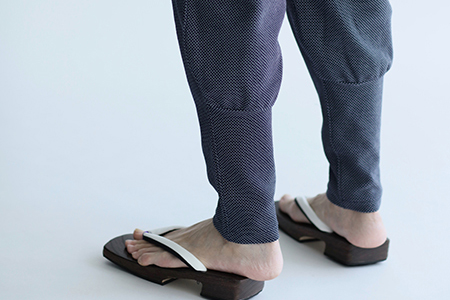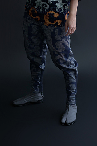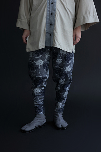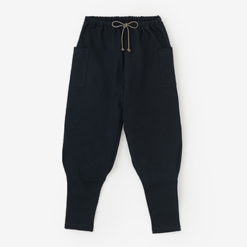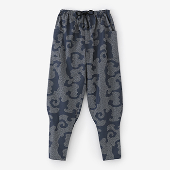 「裁付(ひざ下部分を紐で絞った袴)」に似たシルエットのズボン。動きやすく快適な穿き心地。