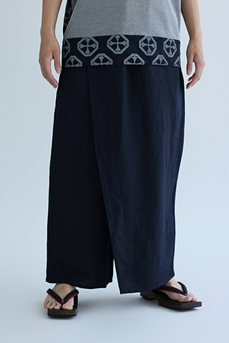 筒状の下衣という意味のズボン。独特のデザインとすっきりとしたシルエットが特徴。