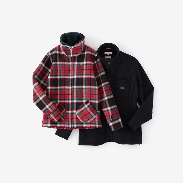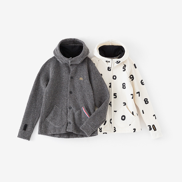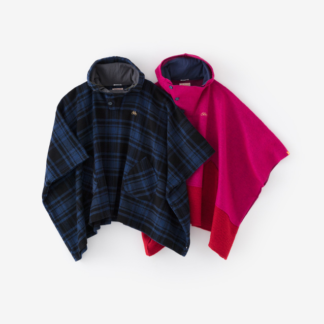サイズが選べるポンチョ、衿回りに工夫をこらしたカーディガンやパーカーなど、寒空の下でもアクティブに楽しめるアウターが充実。
