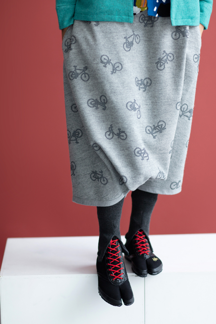 京都の大文字山をイメージした形のズボンです。 着用して自転車に乗れるよう膝丈になっています。