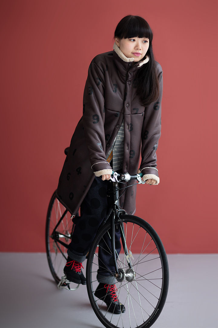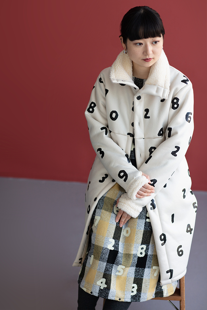 裏面はボア素材で風を通しにくい細身のコート。ハンドウォーマースリーブ仕様で掌まで温かい。
