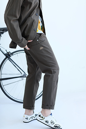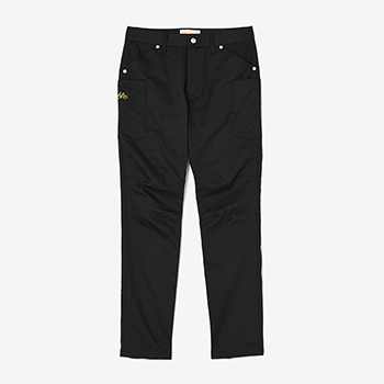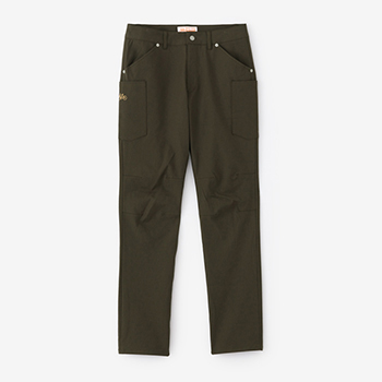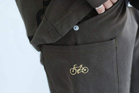 高品質なジーンズの産地、岡山児島製。膝部分には屈伸しやすいようにダーツが入っています。