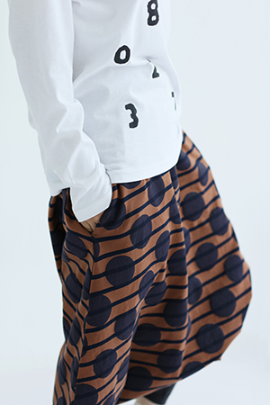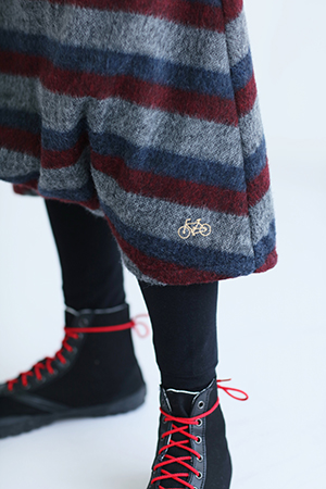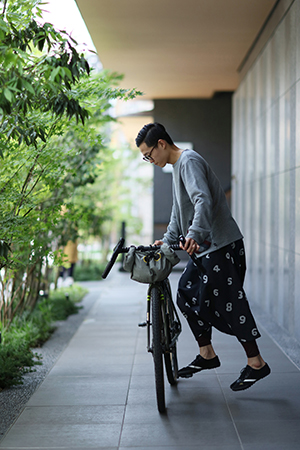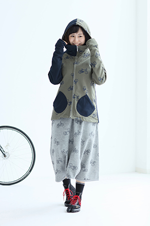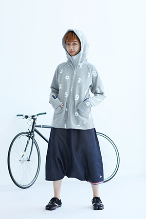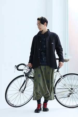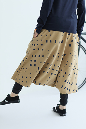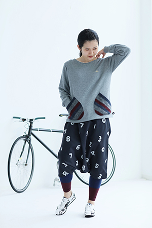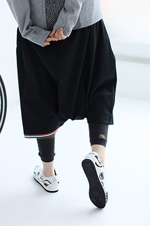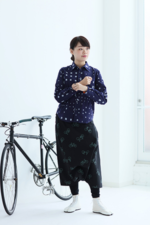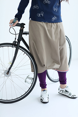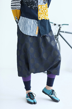 京都の大文字山をイメージした形のズボン。自転車にも乗れるよう膝丈になっています。