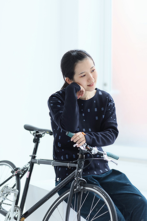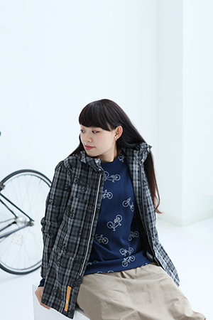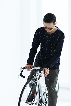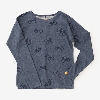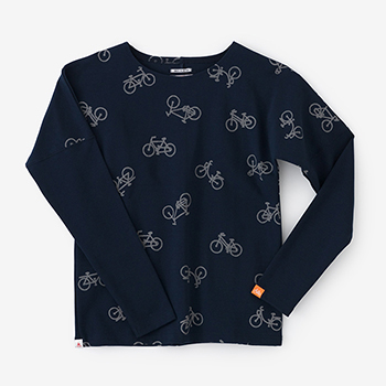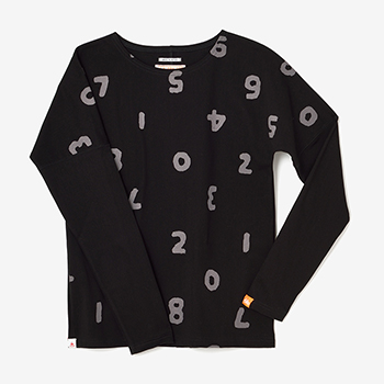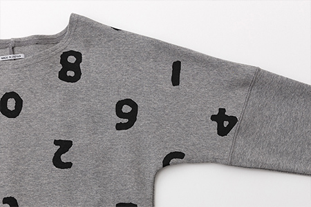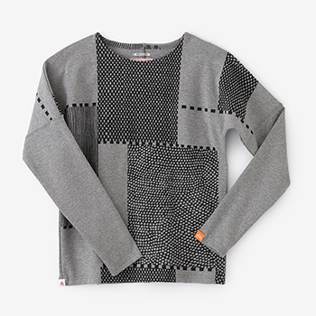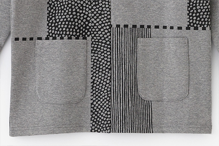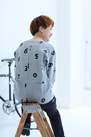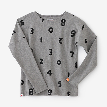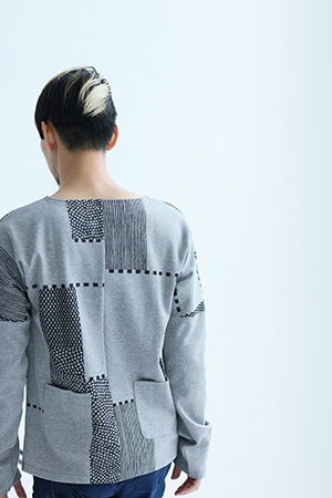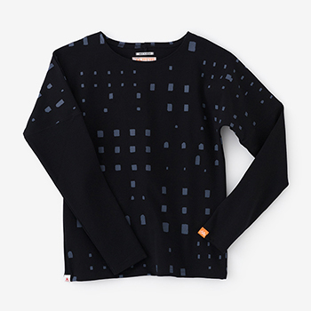 型ぬきのように裁断した長袖Tシャツ。袖の切替がポイントです。