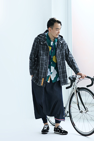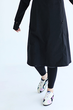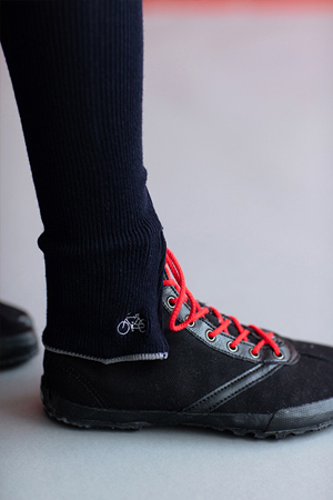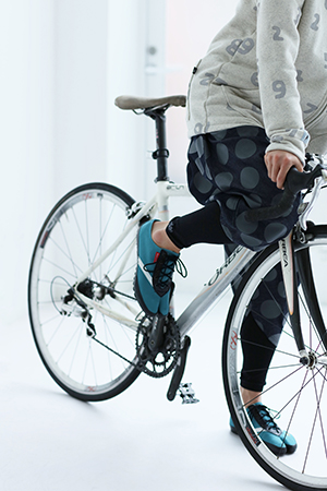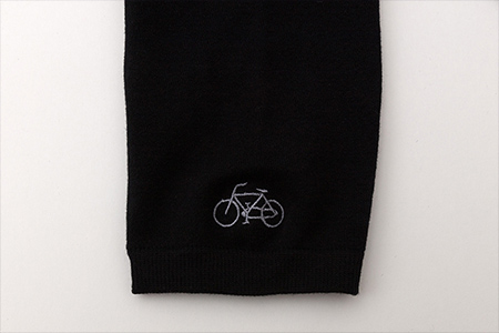 放湿性、吸水速乾性に優れた機能糸を使用したレギンス。右足裾にチャリンコ刺繍入り。