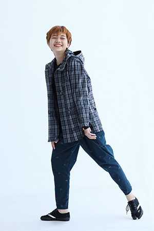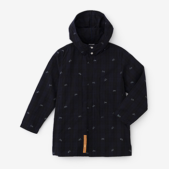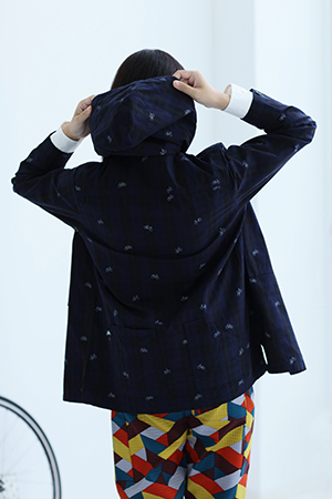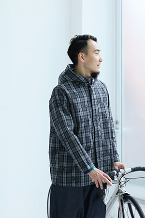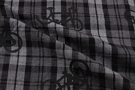 綿100%のチェック生地に京型友禅で染色。ワンウォッシュ加工を施しています。