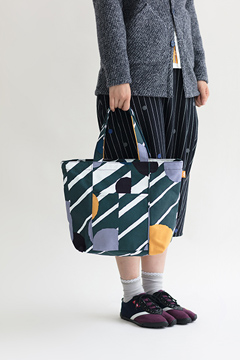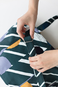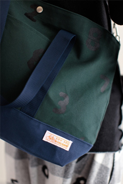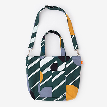 ショルダーとしてもトートとしても使えるバッグ。丈夫な帆布生地に京型友禅で染色。
