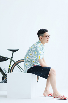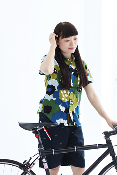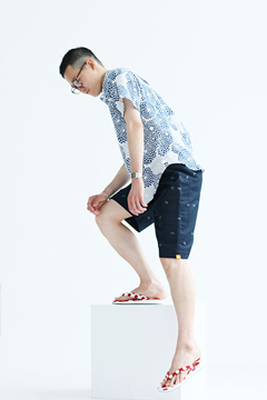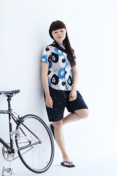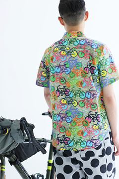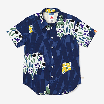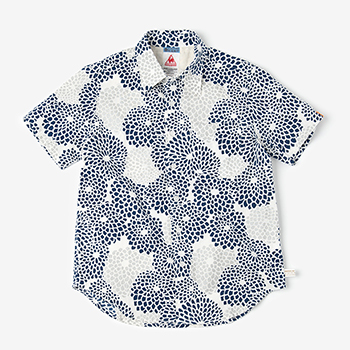 ポップな夏の大定番シャツ。爽やかな着心地の高島縮に京型友禅で染色。