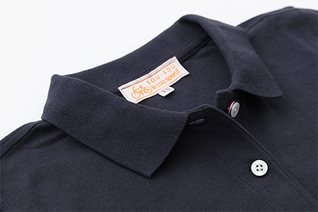 肌触りがよく吸汗性に優れたカノコポロシャツ。オリジナルトリコロール釦を使用。