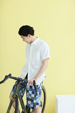 様々なコーディネートと相性のよい半袖シャツ。綿麻オックスフォード生地を使用。