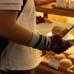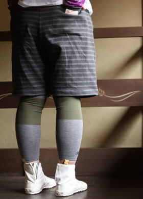 ボーダーショーツのポケットにはちらりとチャリンチャリンが。ちなみにポケットの内側の生地も伊勢木綿手ぬぐいです。