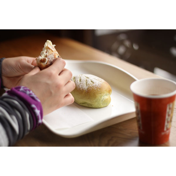 焼きたてパンを2階ですぐに食べられます。テイクアウトしてすぐ近くの鴨川で…というのもおすすめです。