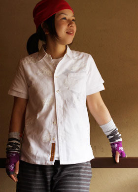 伊勢木綿の手ぬぐいシャツは風通しがよく、肌ざわりと吸水性も抜群です。半袖の時は紫外線防止のUVPを忘れずに。汗も吸ってくれる のでグリップも滑りません。