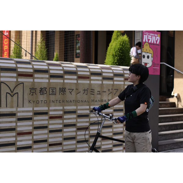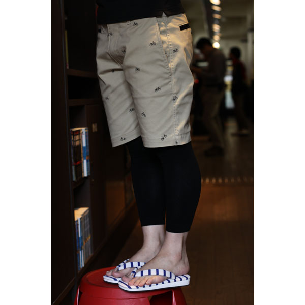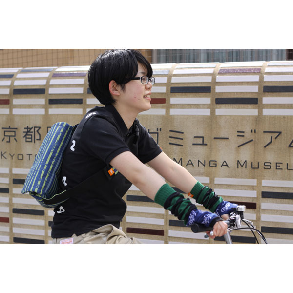 ストレッチ素材なので動きやすく自車をこぐのも快適です。
