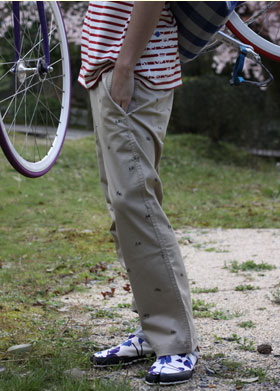 「お馴染のBIKEペインターに比べるとすっきりしたシルエットのBIKEチノ。」