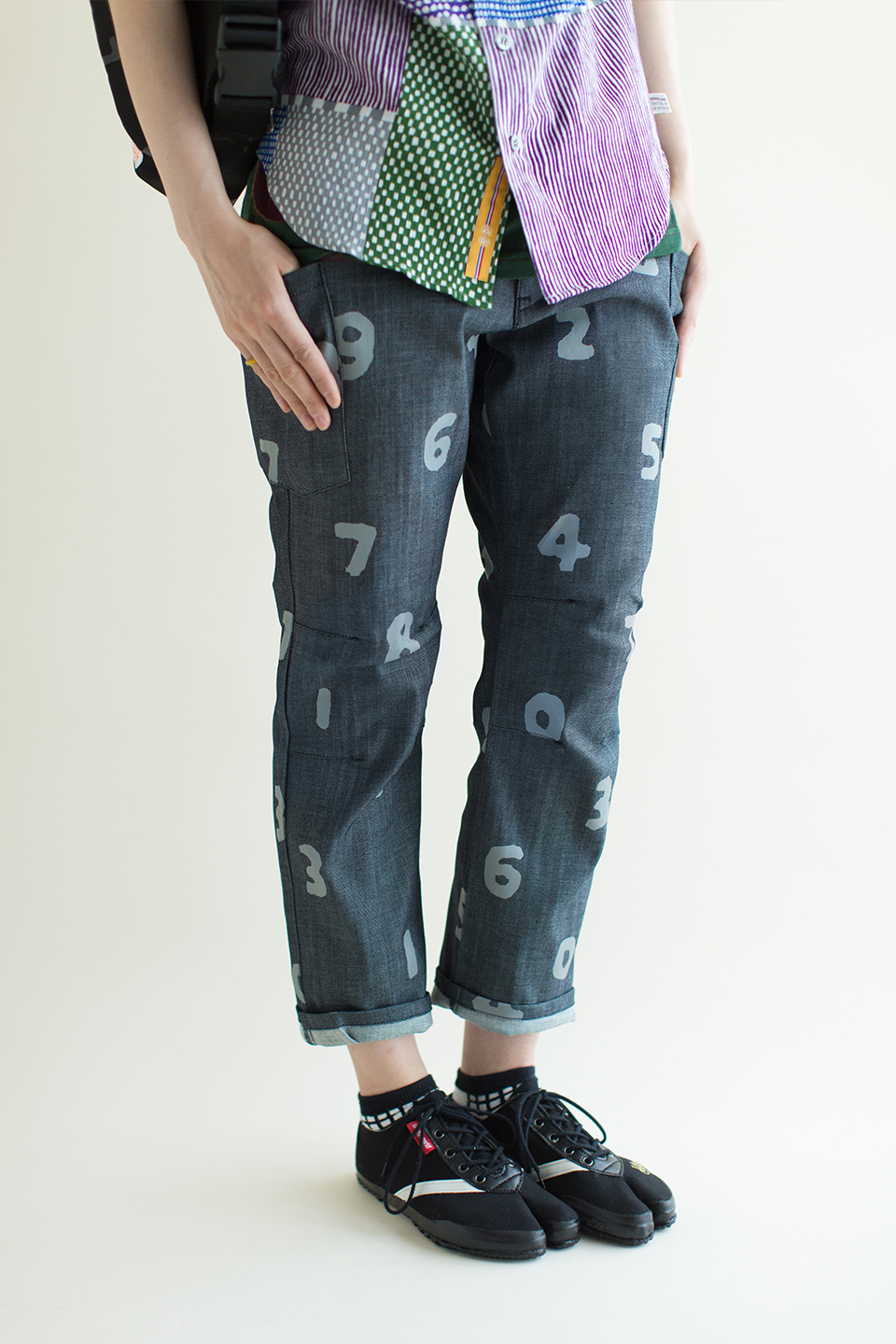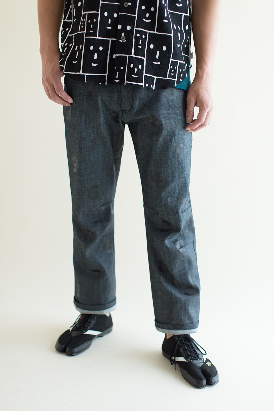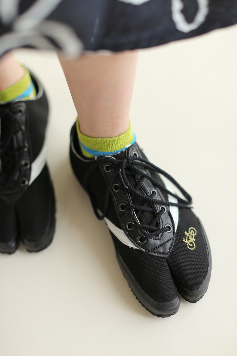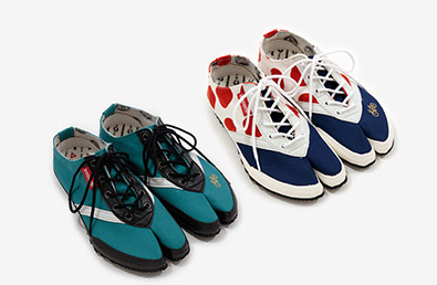 オリジナルジャガードデニムを使用したローカット仕様の紐式地下足袋。