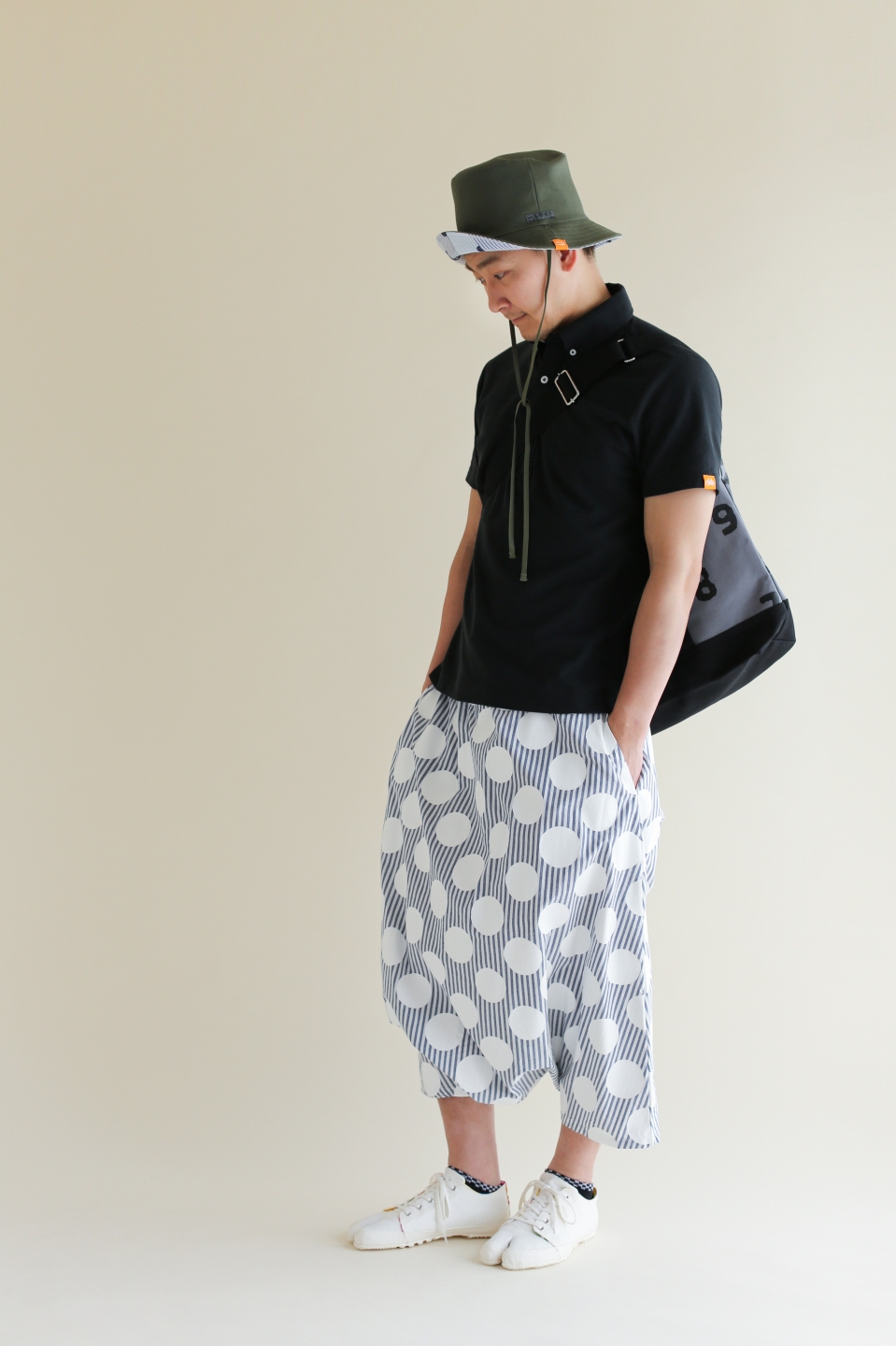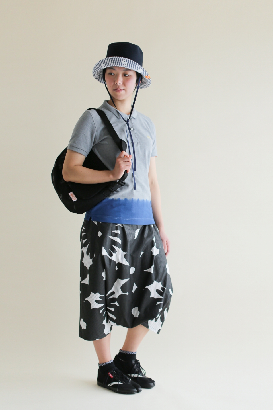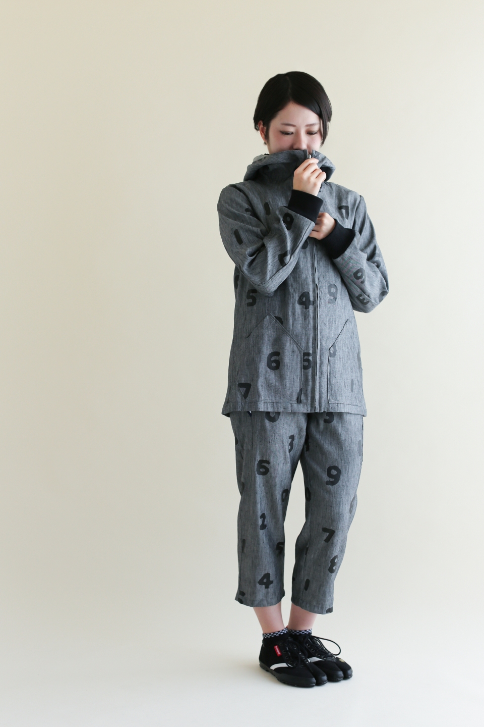 オリジナルジャガードデニムを使用したローカット仕様の紐式地下足袋。