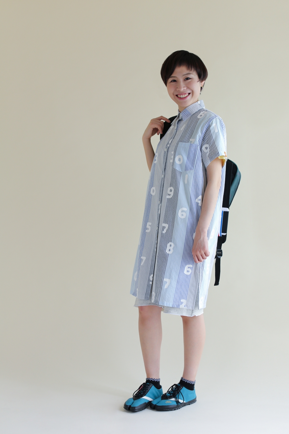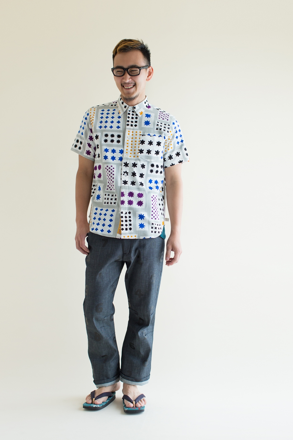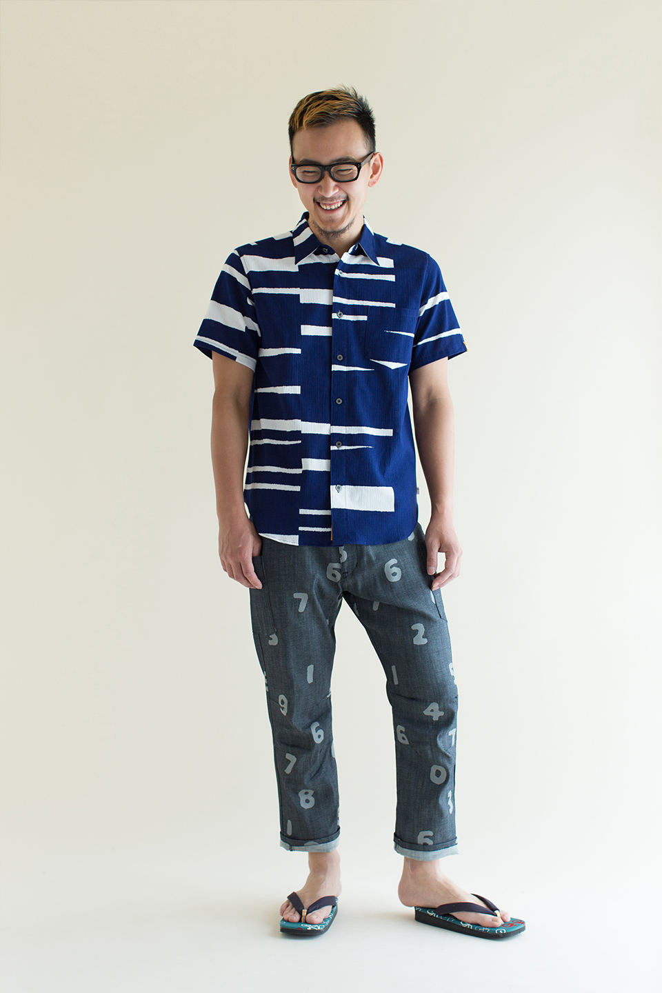 高島縮 半袖シャツ/笑顔