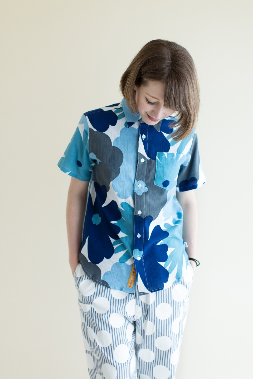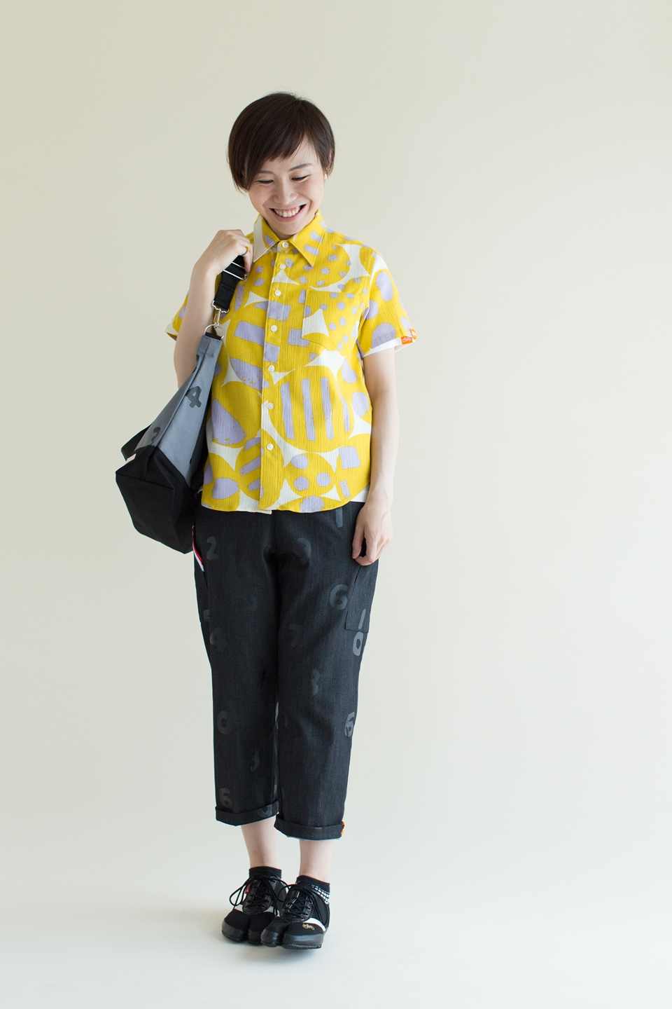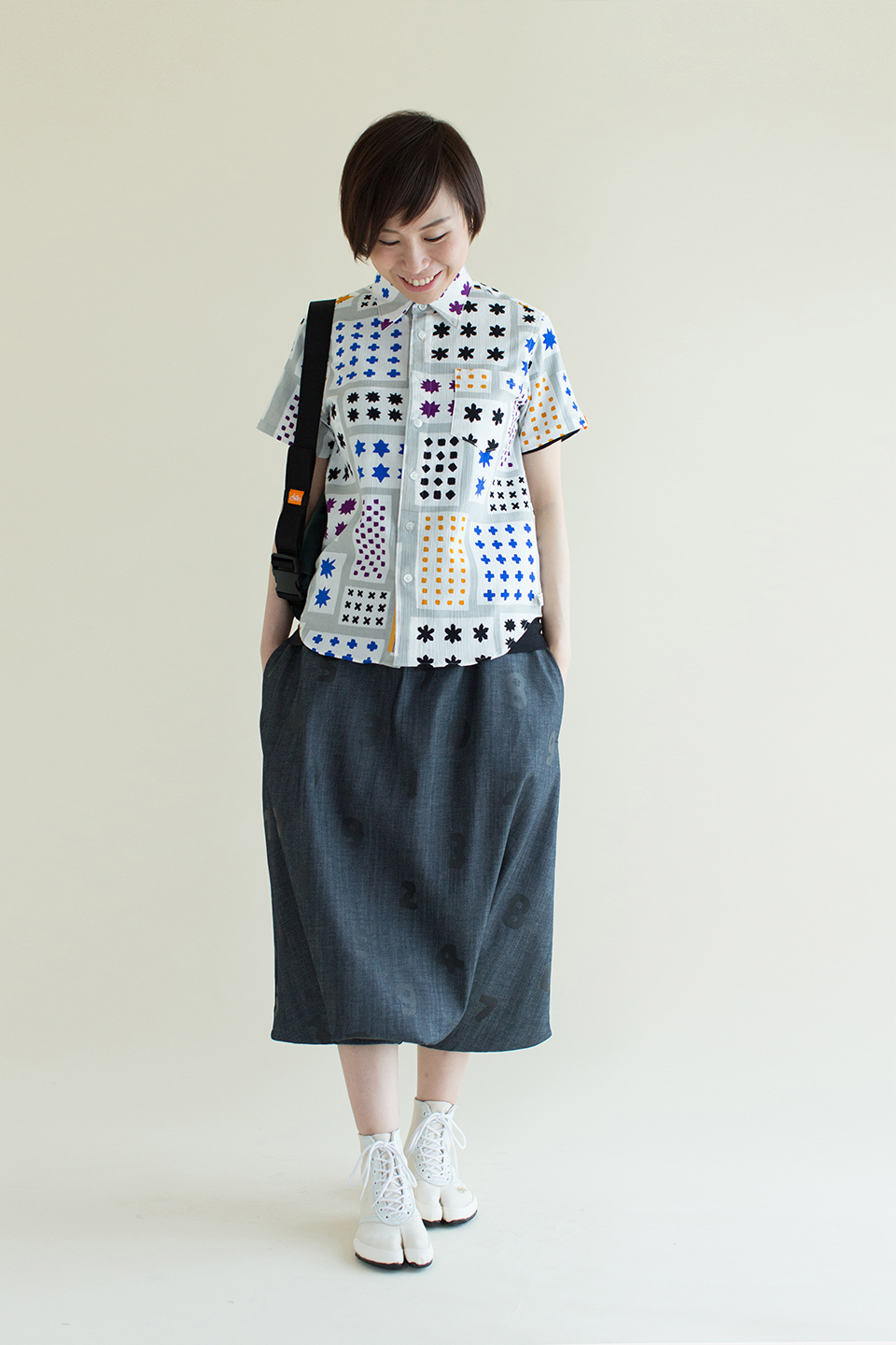 高島縮 半袖シャツ/笑顔