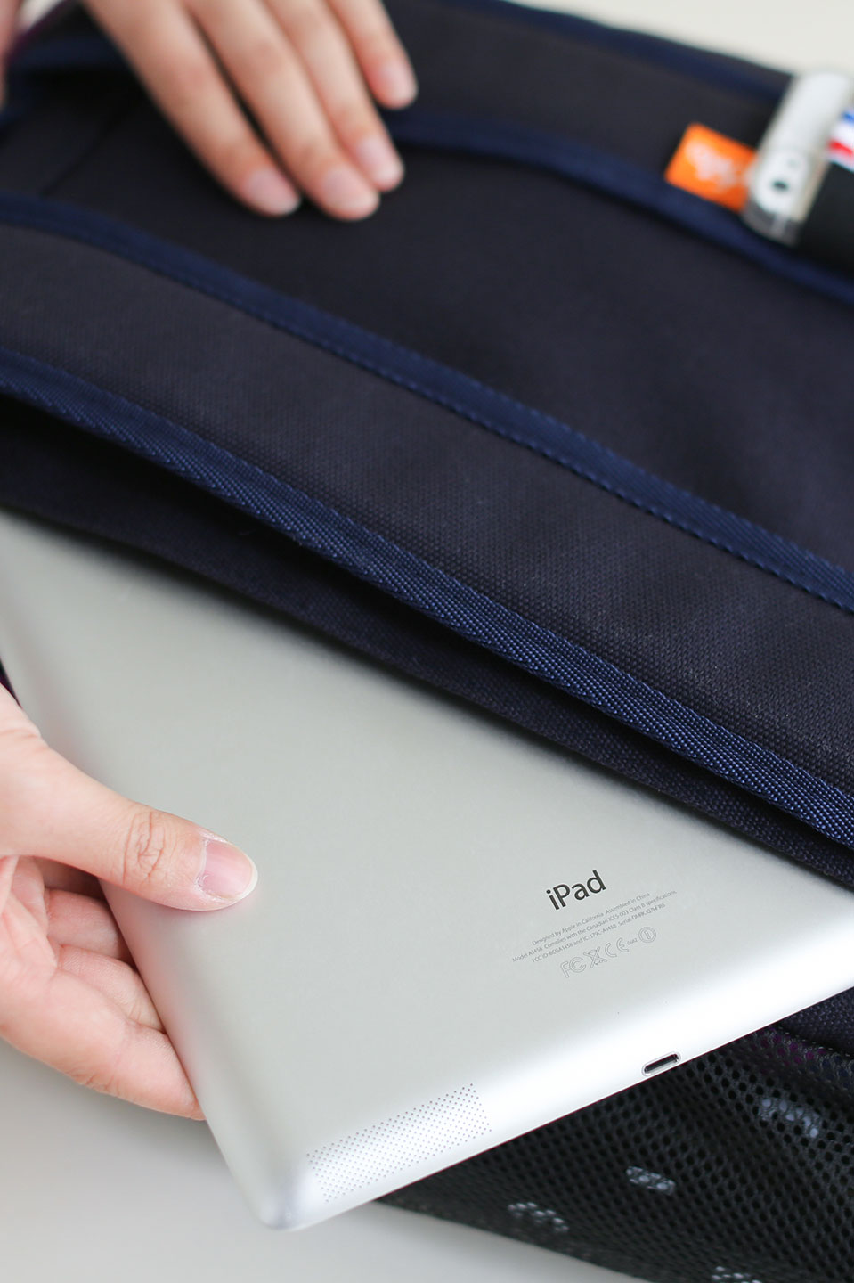 表地は綿の八号帆布、内側には撥水ナイロンを使用。