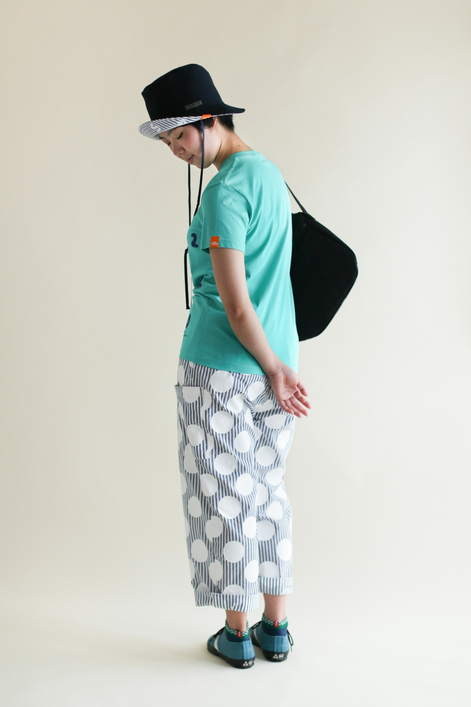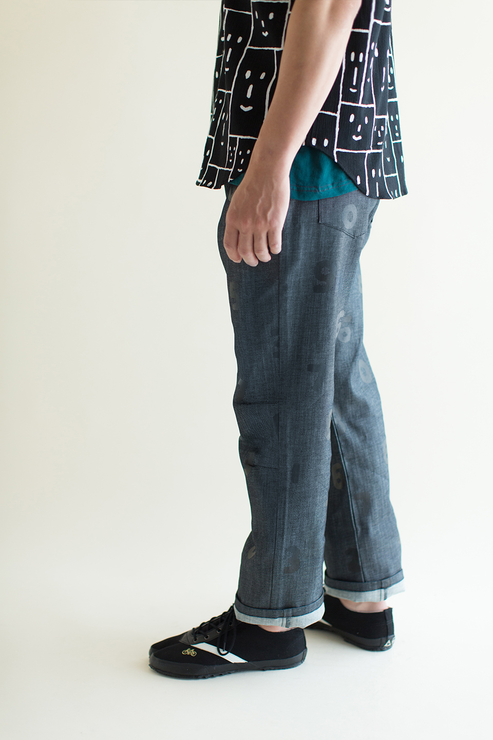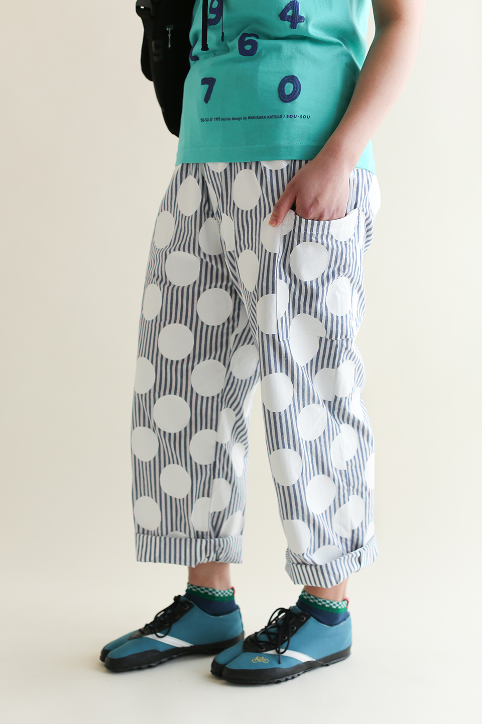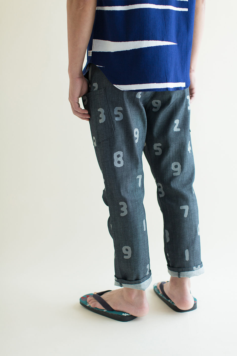 京都の大文字山をイメージした形のズボン。
