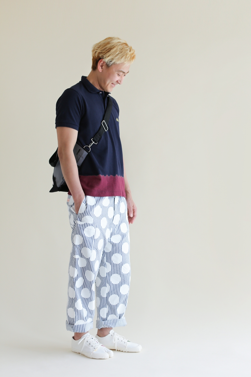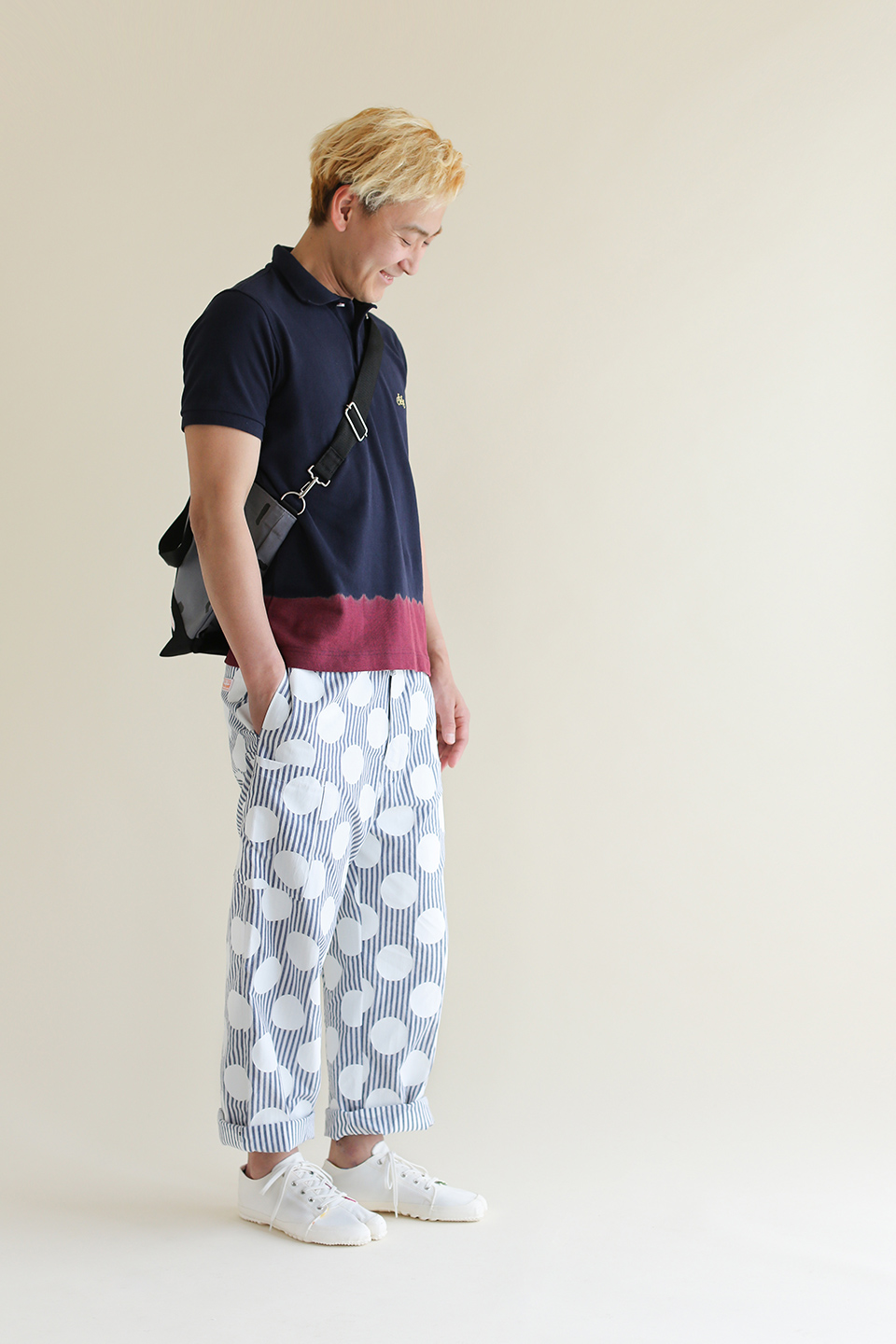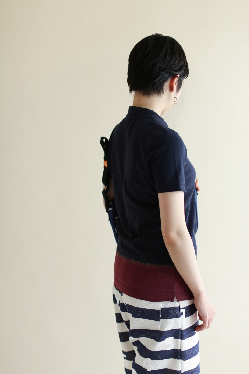 たばた絞り 半袖ポロシャツ/染め分け 濃紺×赤蘇枋(のうこん×あかすおう)