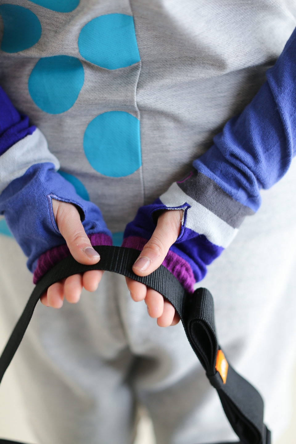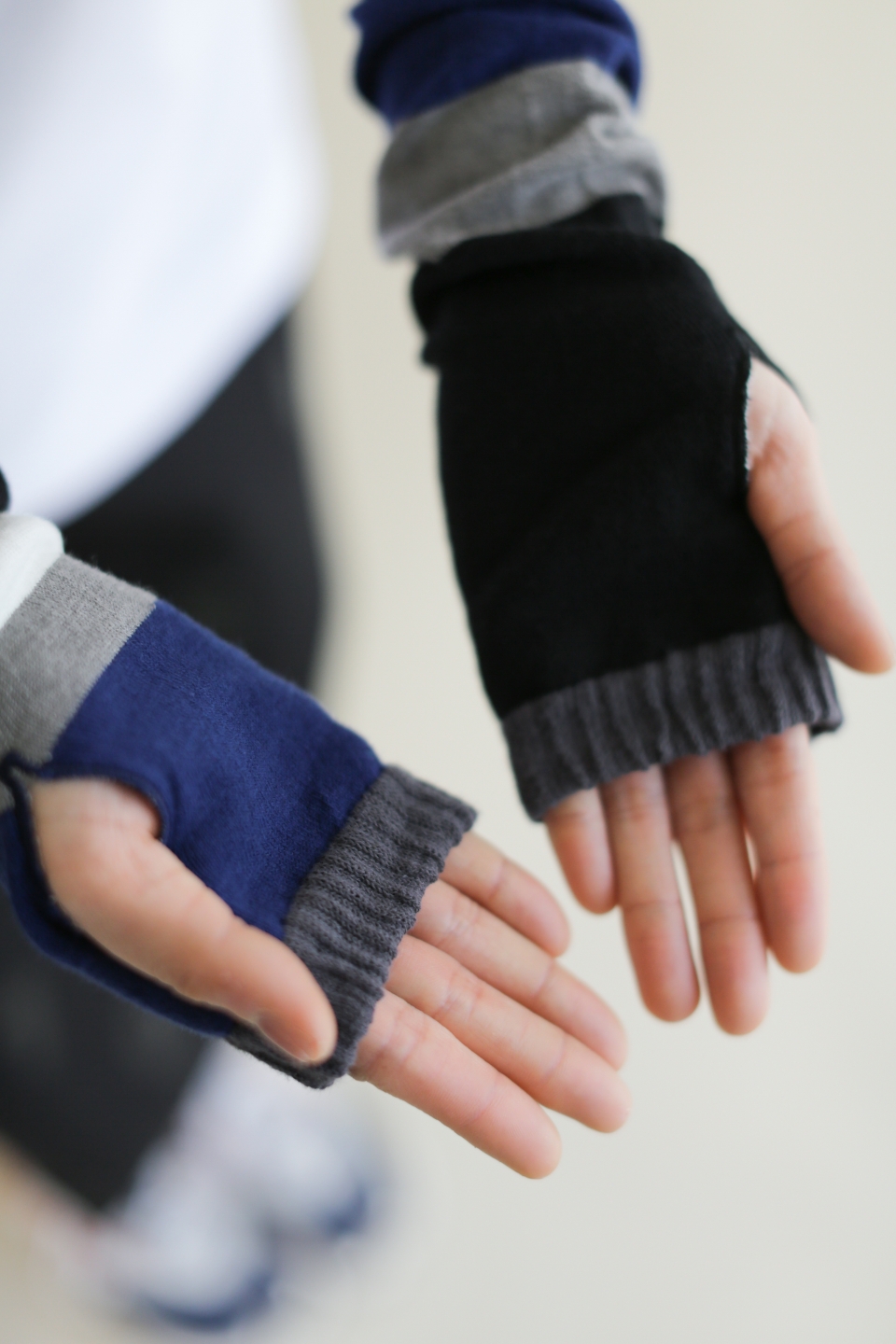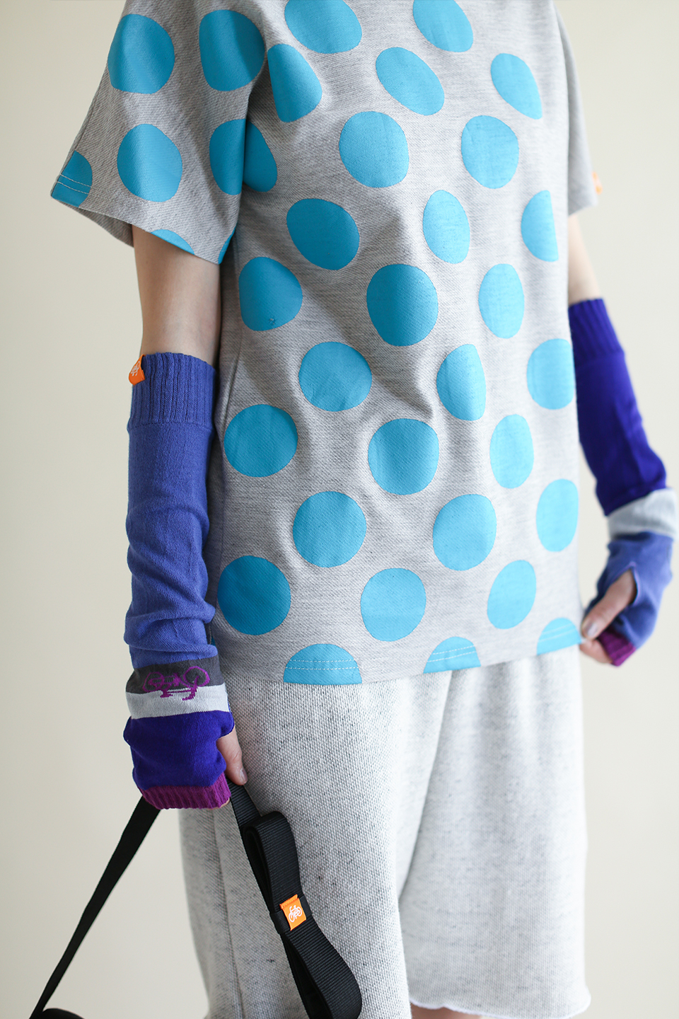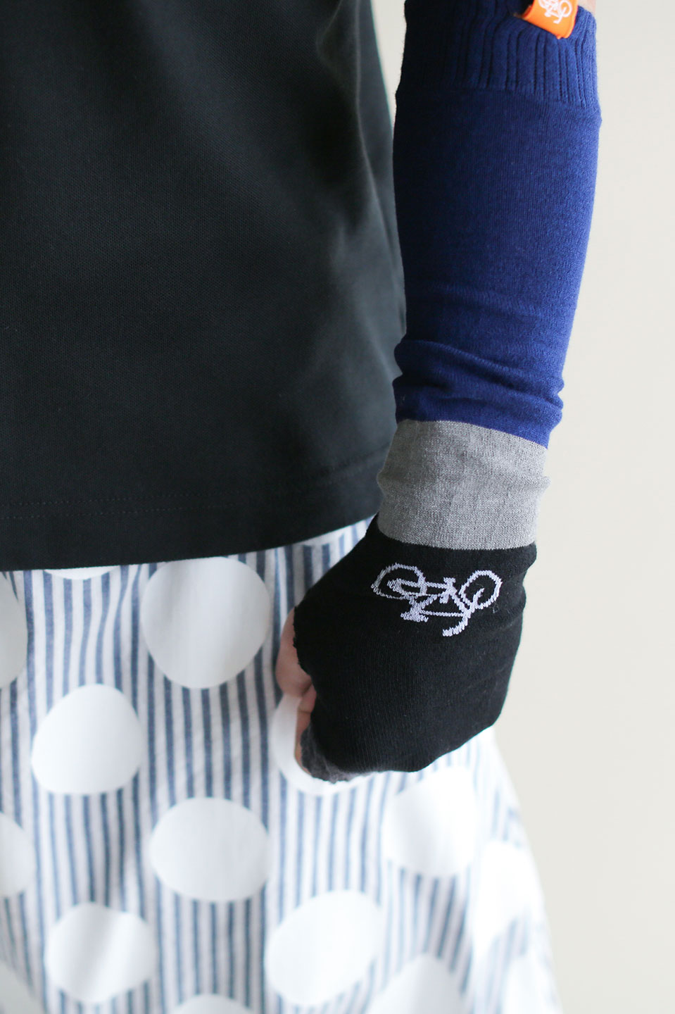 左右アシンメトリーなデザインのアームカバー。