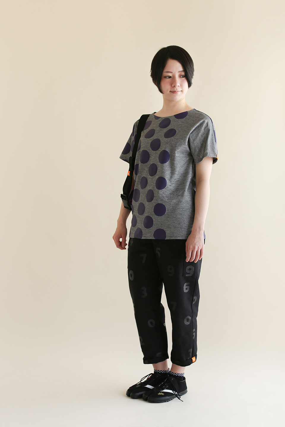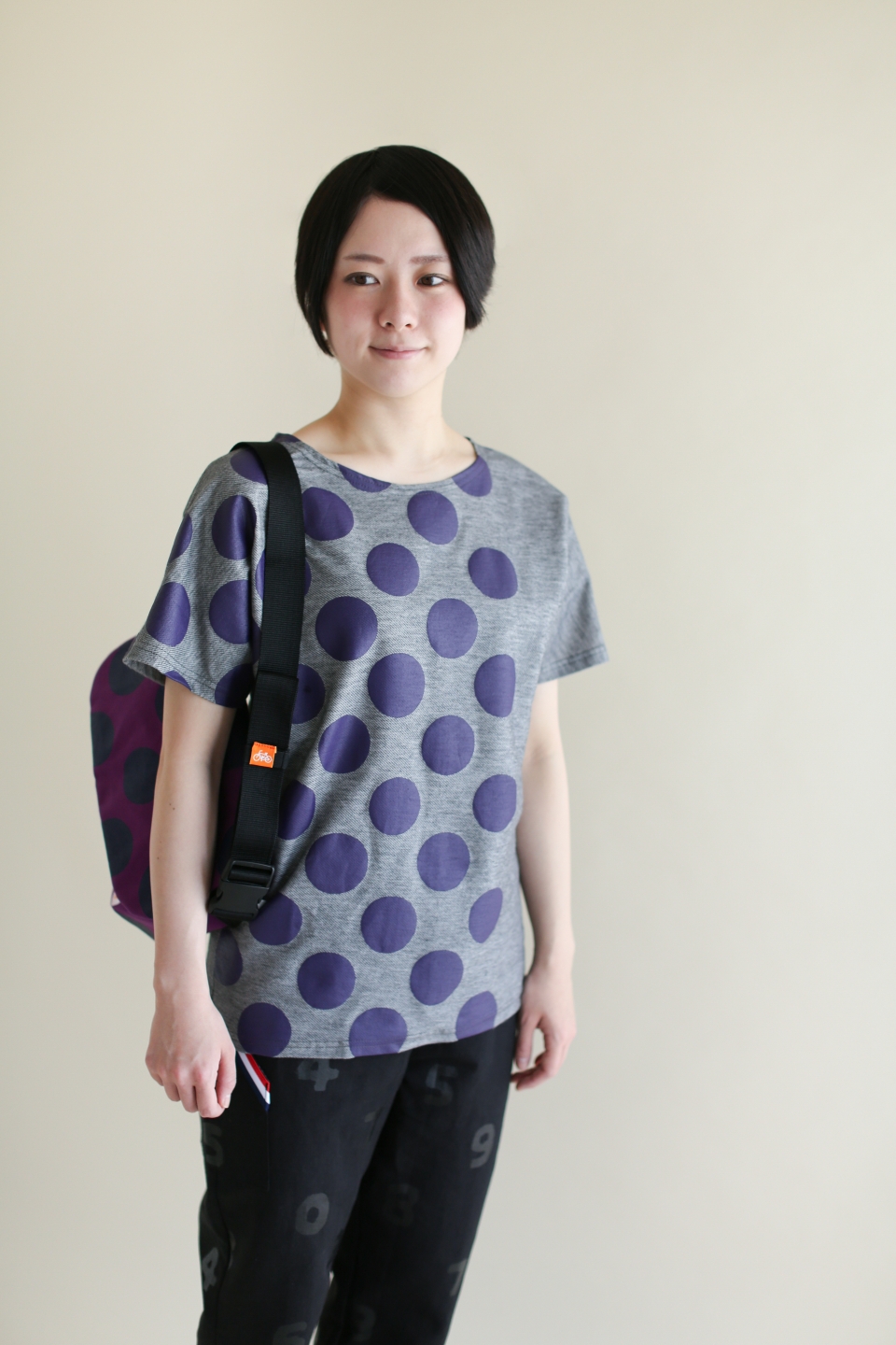 たばた絞り 半袖Tシャツ/水玉大 濡羽色×白鼠(ぬればいろ×しろねず)