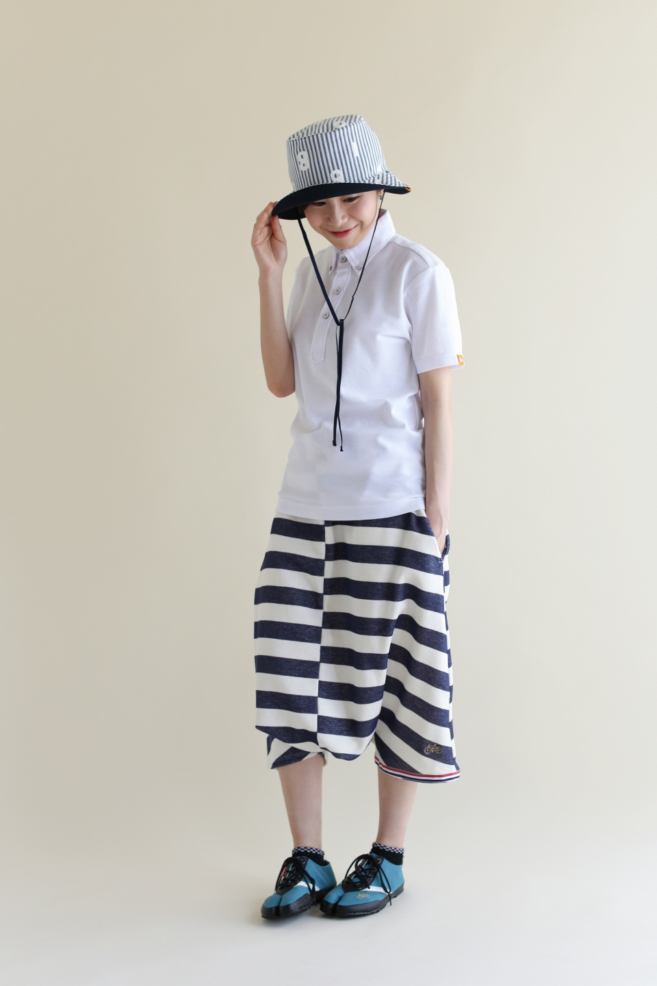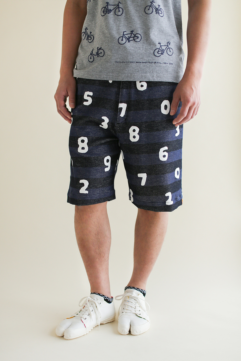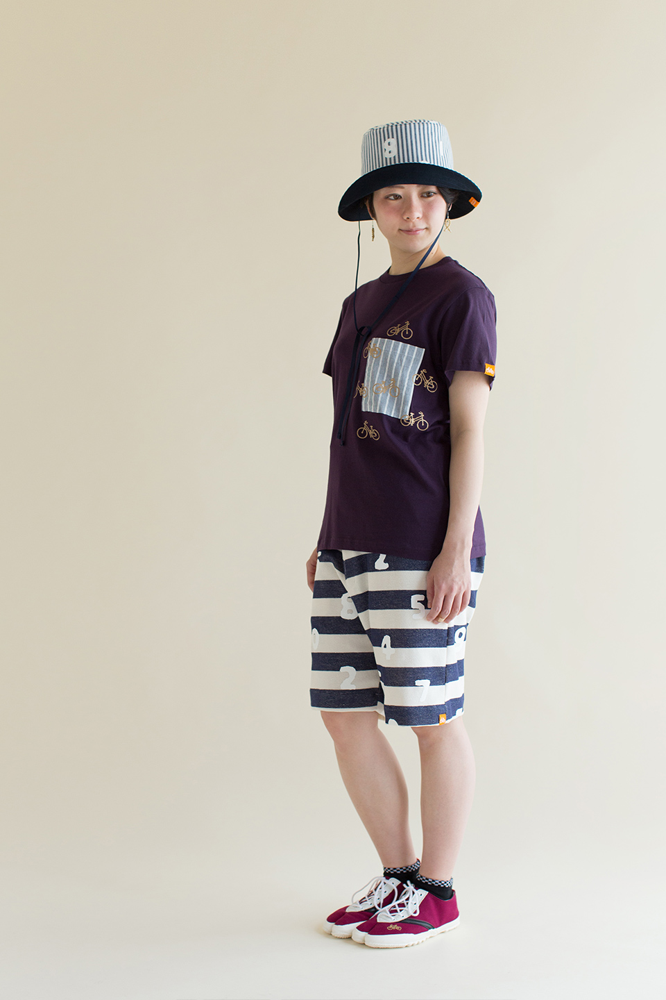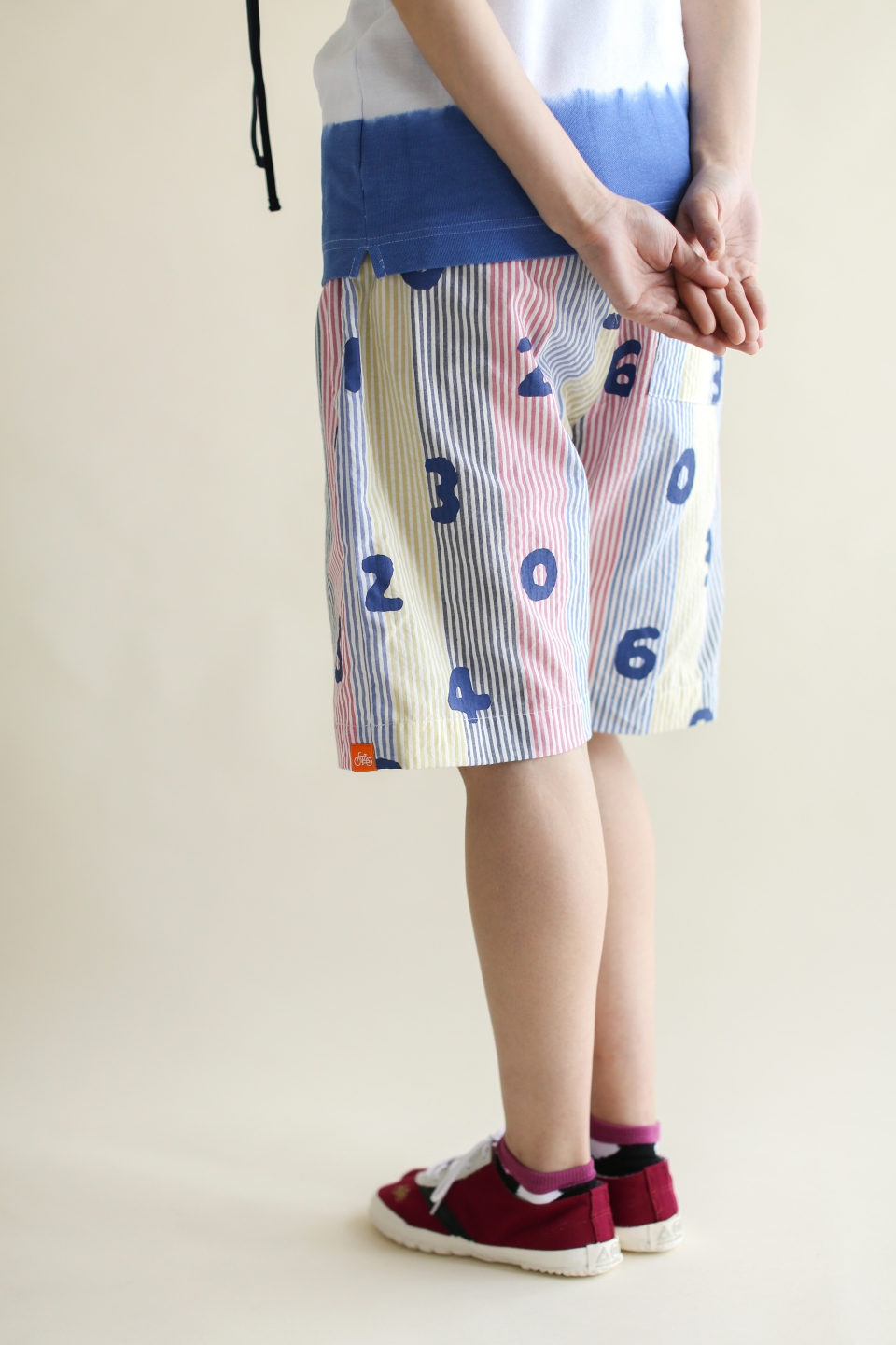 パイルボーダー BIKE ショーツ/SO-SU-U 大 生成×濃紺(きなり×のうこん)