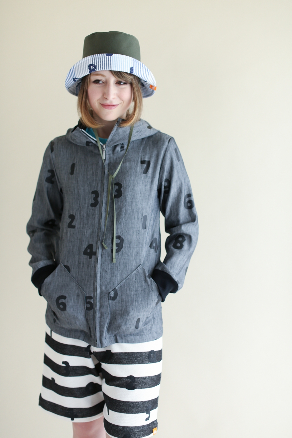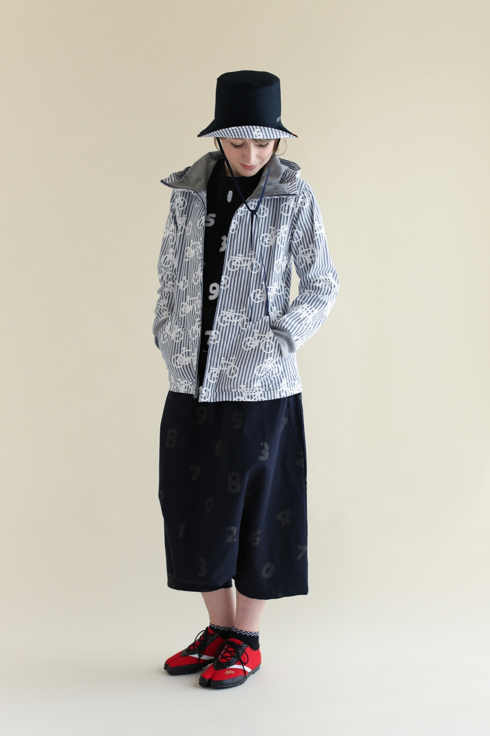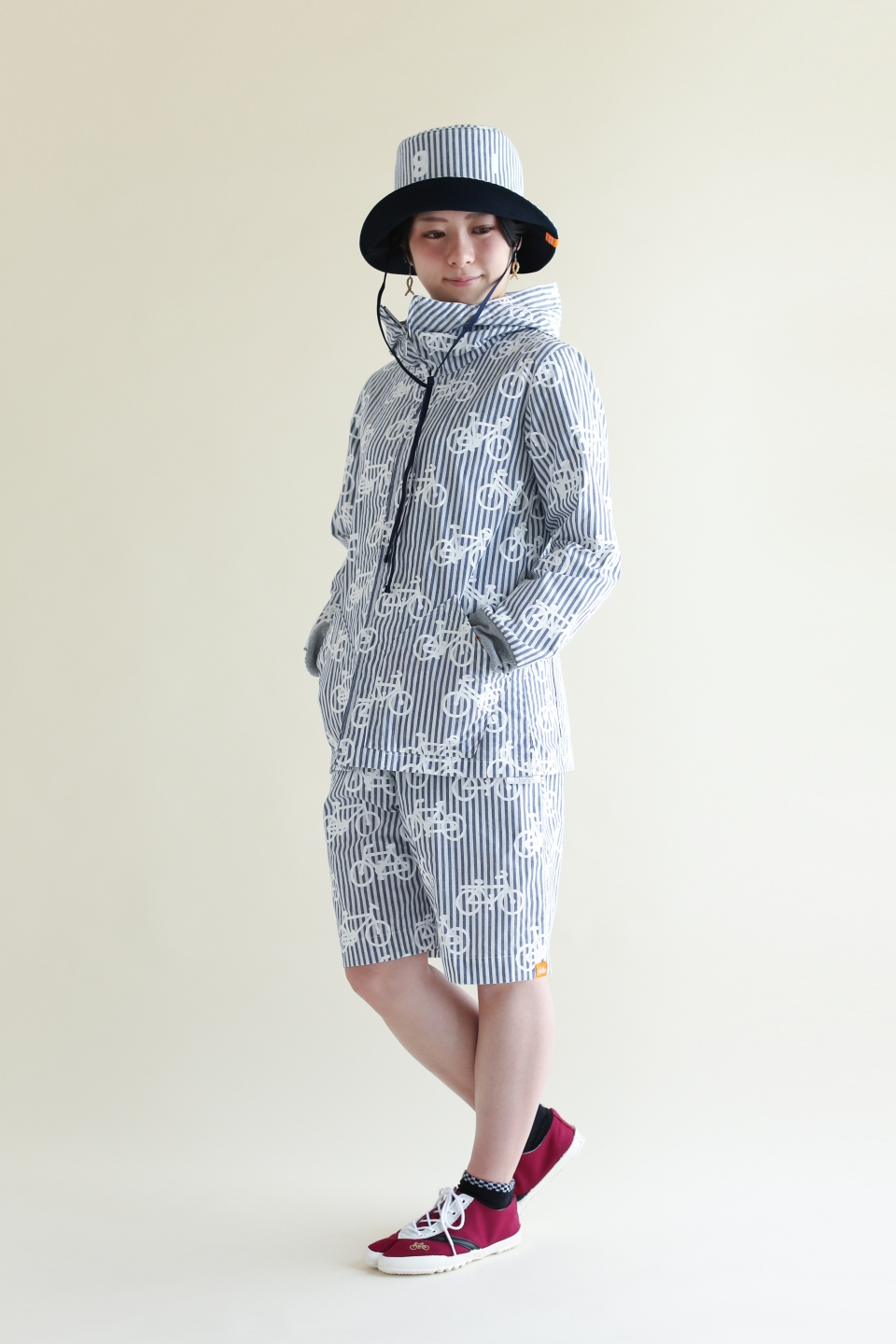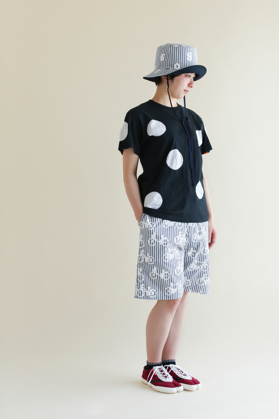パイルボーダー BIKE ショーツ/SO-SU-U 大 生成×濃紺(きなり×のうこん)