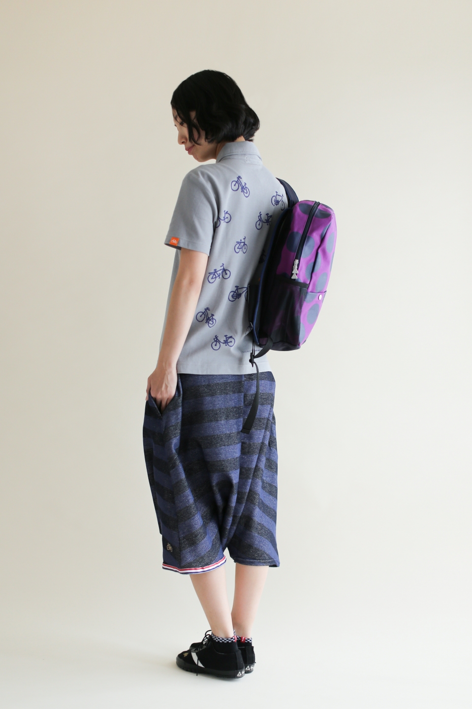 パイルボーダー BIKE ショーツ/SO-SU-U 大 濡羽色×濃紺(ぬればいろ×のうこん)