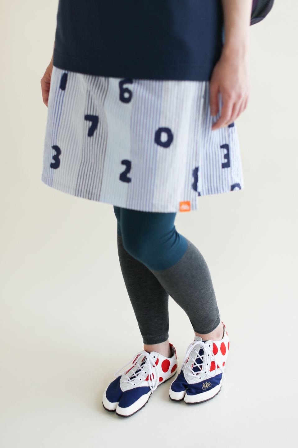 着用して自転車に乗れるよう膝丈になっています。