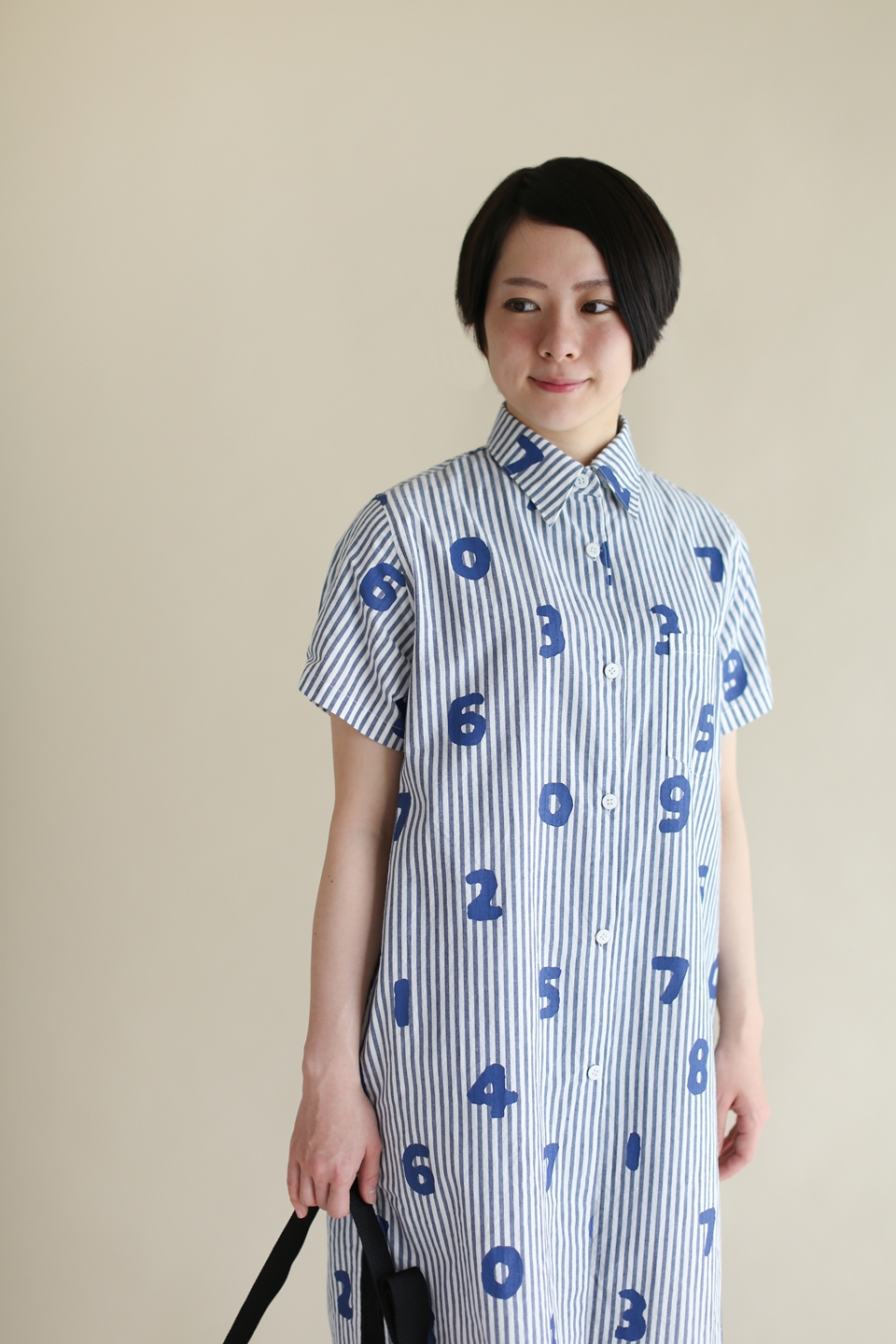 しぼ感が特徴的な綿のシアサッカー生地を使用したボタンワンピースです。