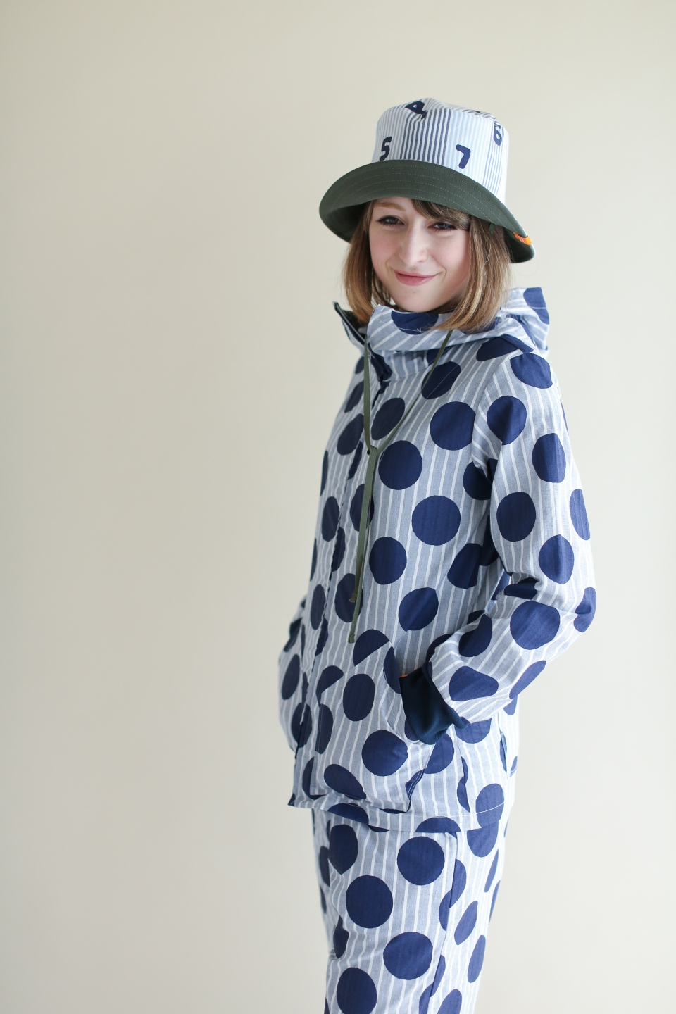 表地にはしぼ感が特徴的な綿の生地、裏地には薄手帆布生地を使用。