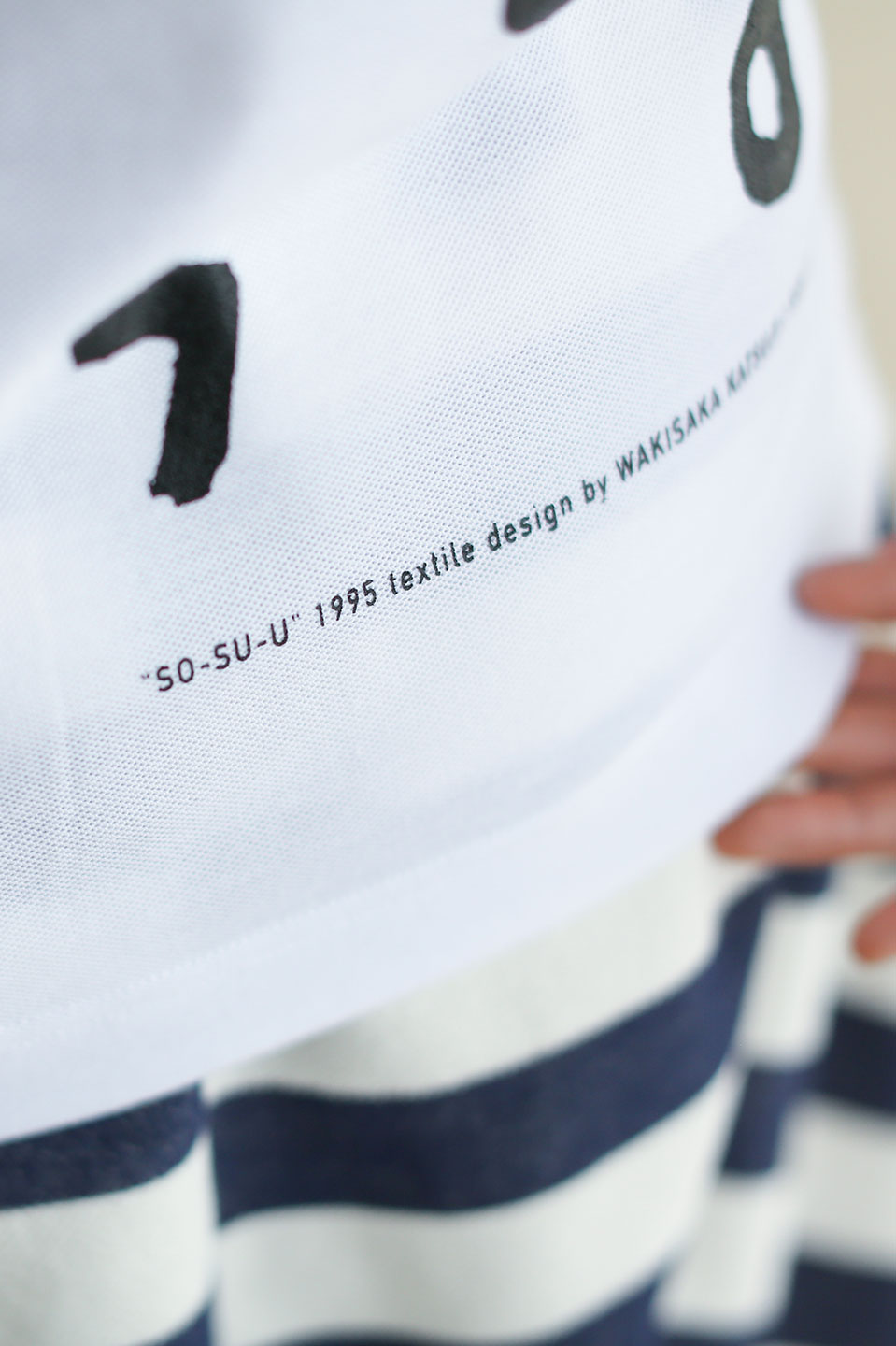 刺繍のようなプリントや和紙を使った”SO-SU-U”柄のTシャツ。