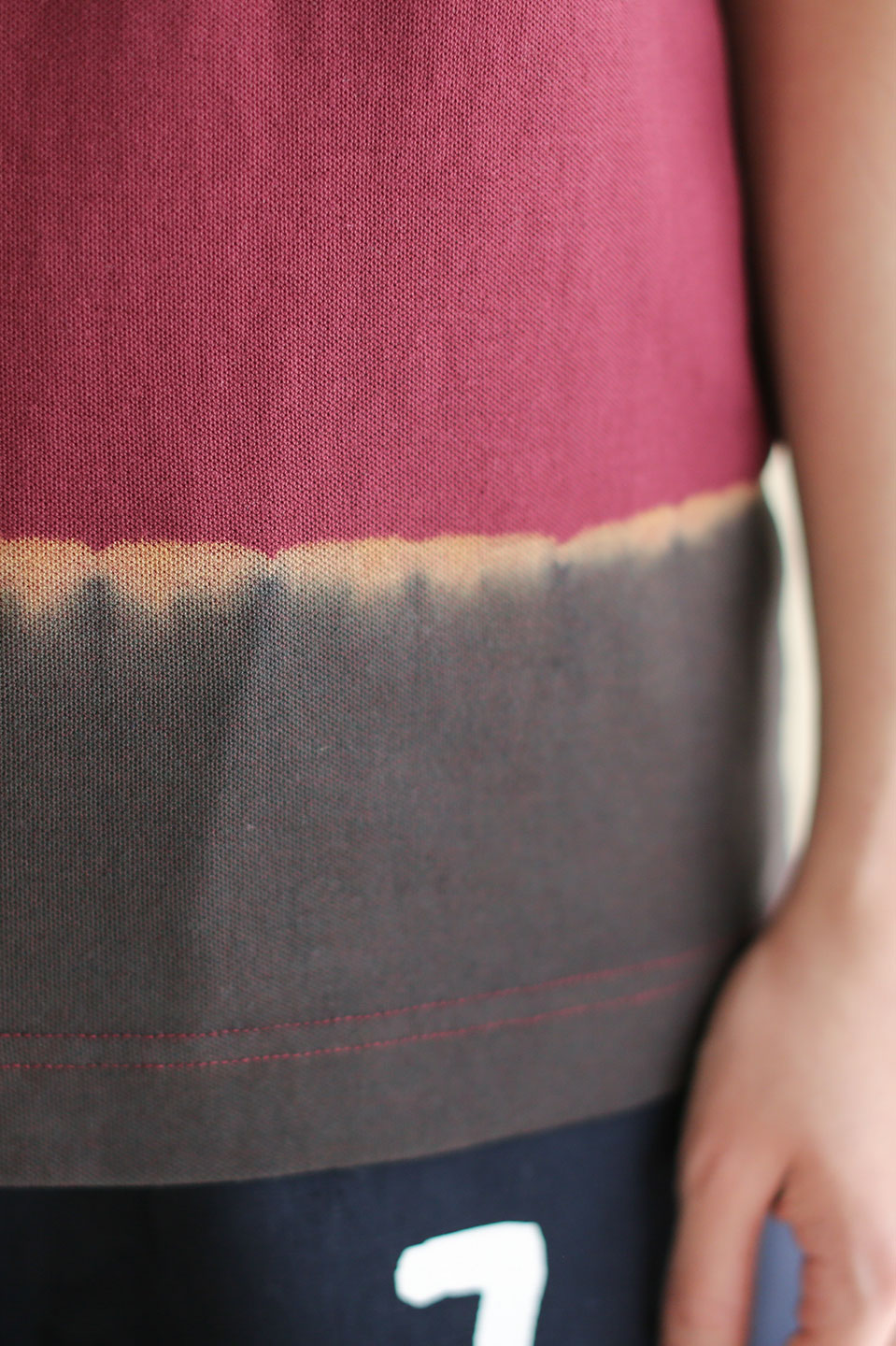 たばた絞り 半袖ポロシャツ/染め分け 蘇枋色×憲法色(すおういろ×けんぽういろ)