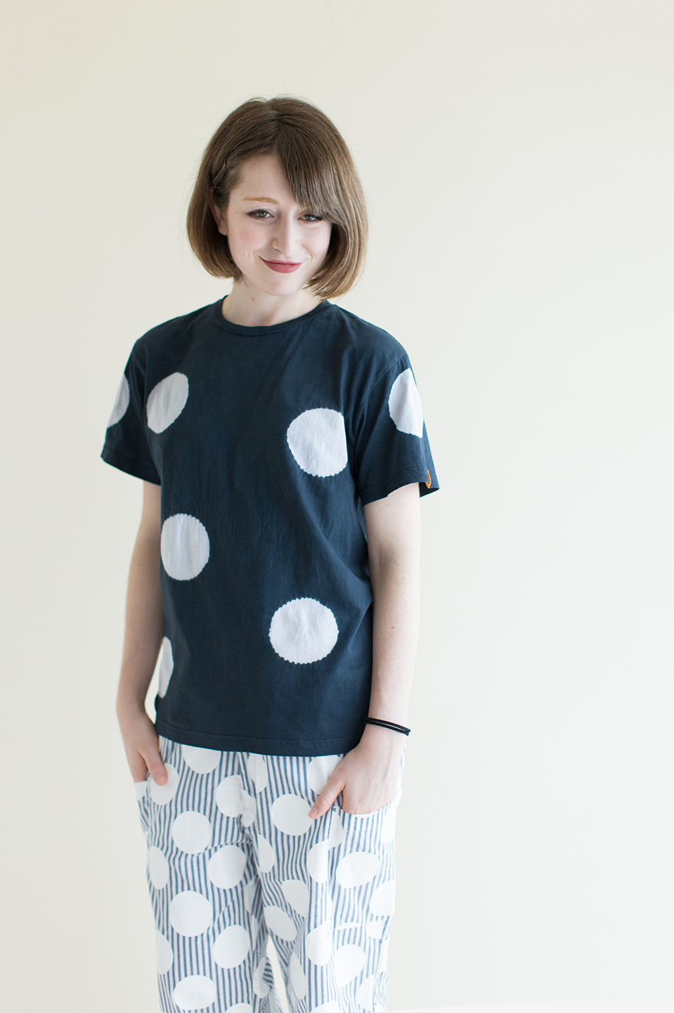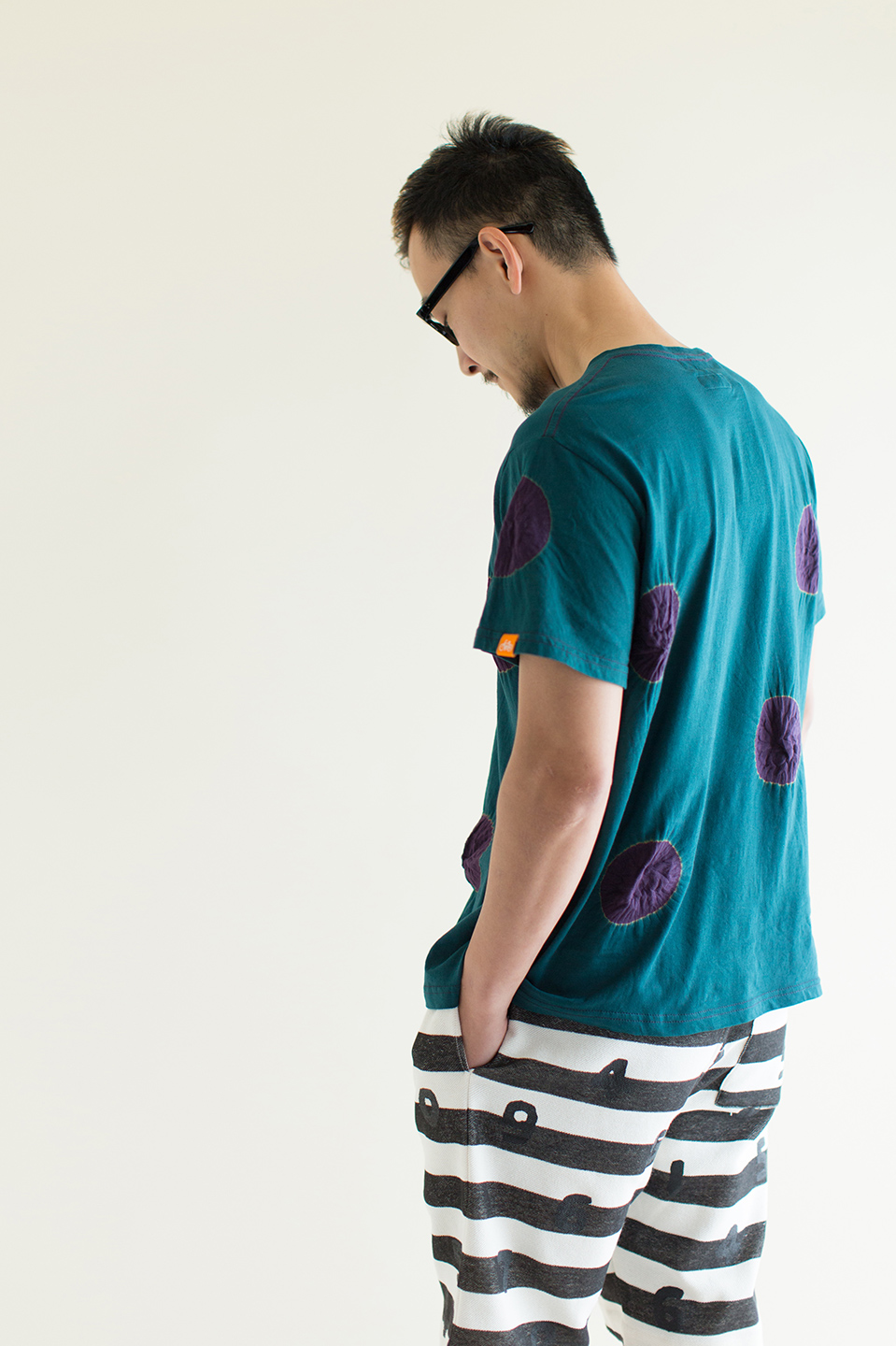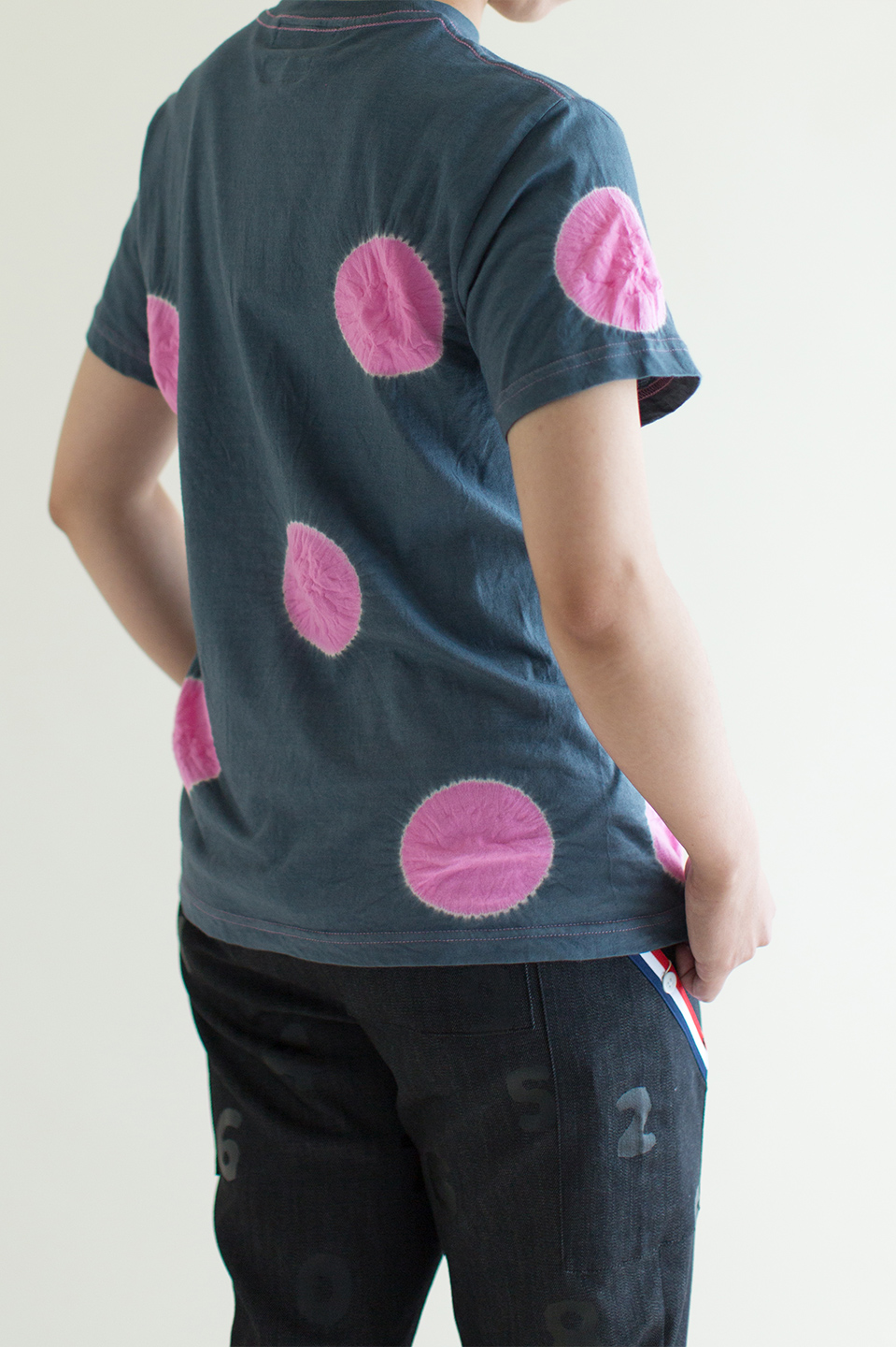 たばた絞り 半袖Tシャツ/水玉大 高麗納戸×減紫(こうらいなんど×けしむらさき)