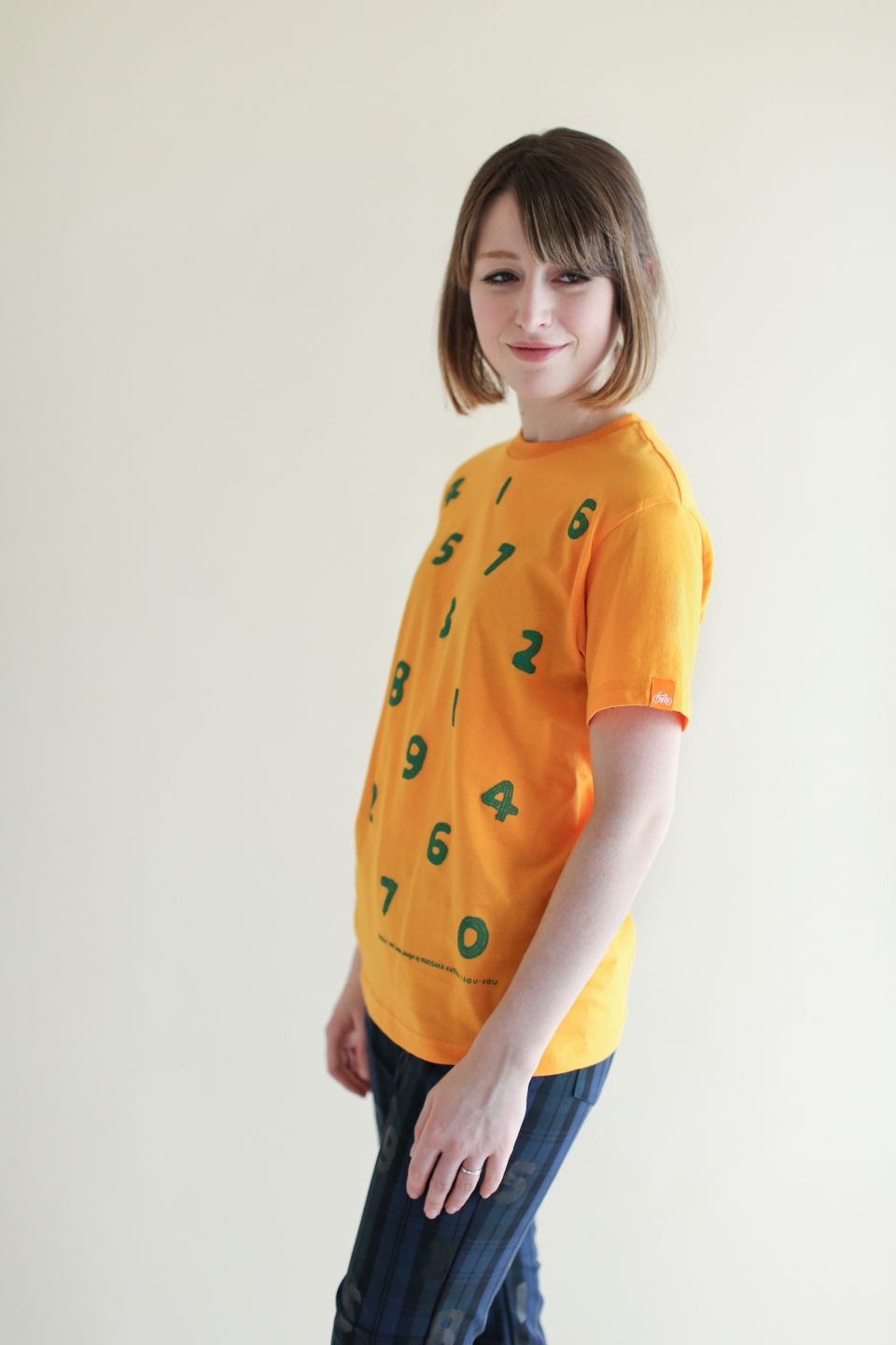 逆綾 二重織 型ぬきTシャツ/チャリンチャリンあっちこっち 亜麻色×つくも