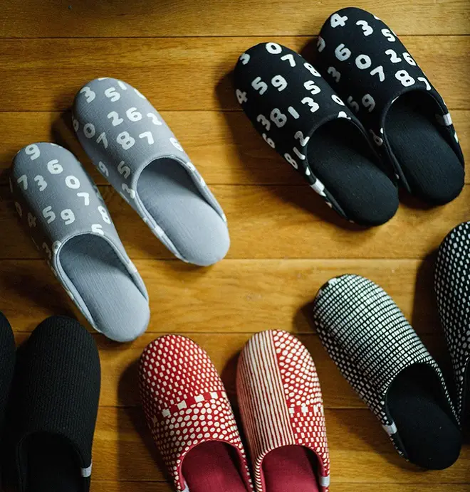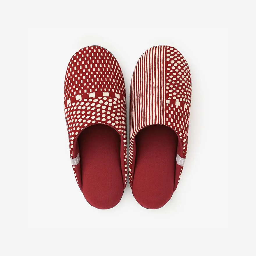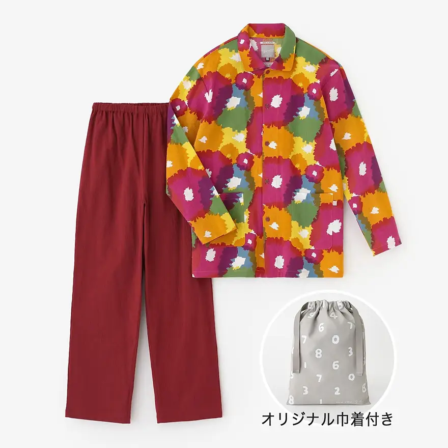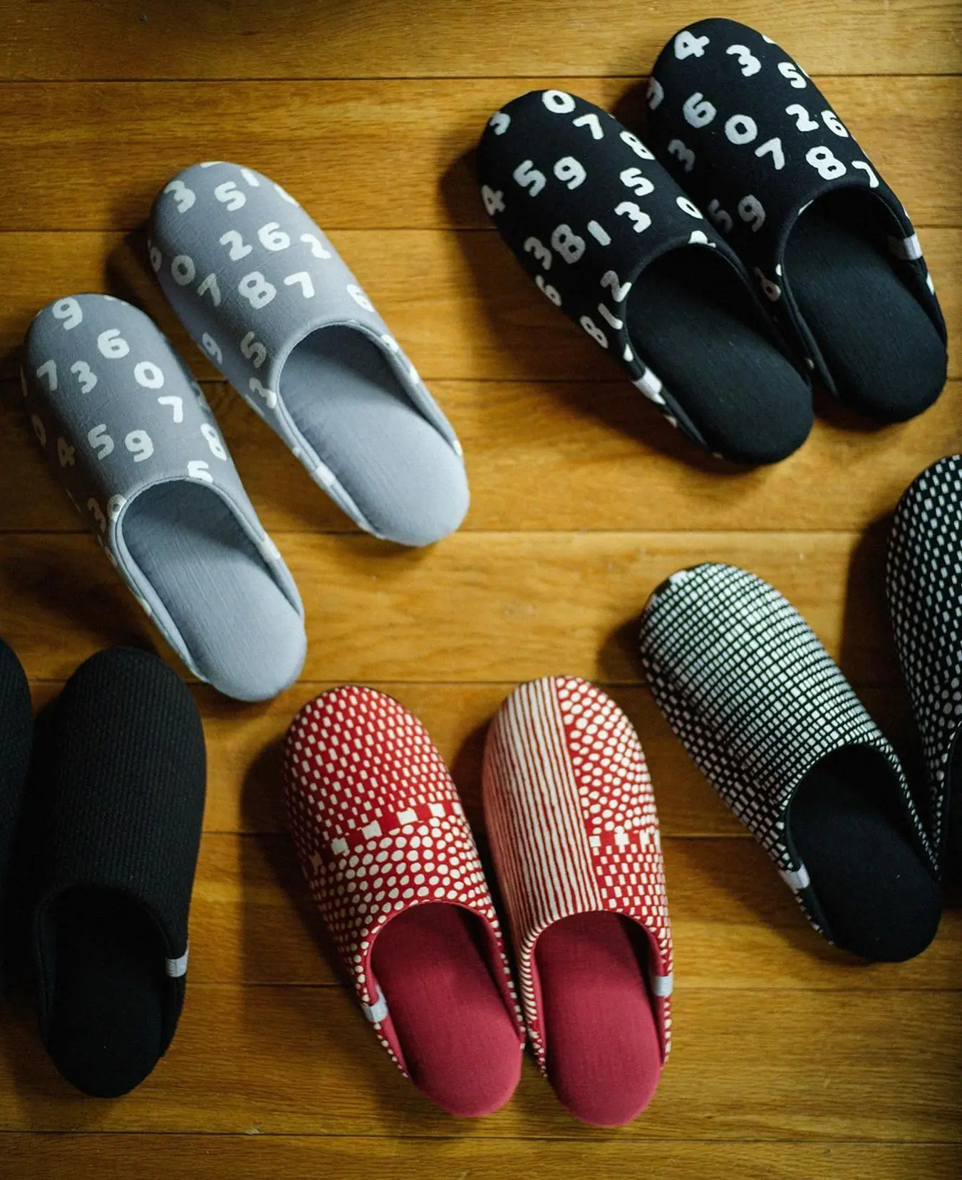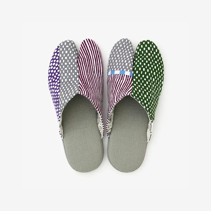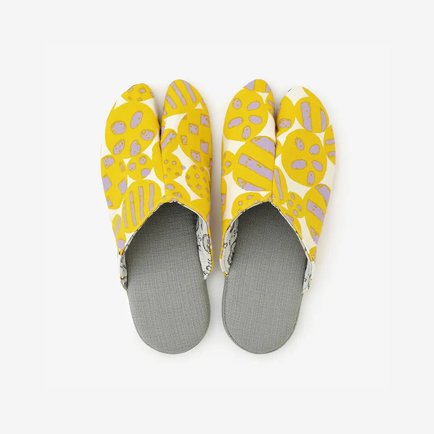 くつろぎのおうち時間。ルームウェアやスリッパなど。SOU・SOUのポップなテキスタイルでお家の中でも明るい気分で。