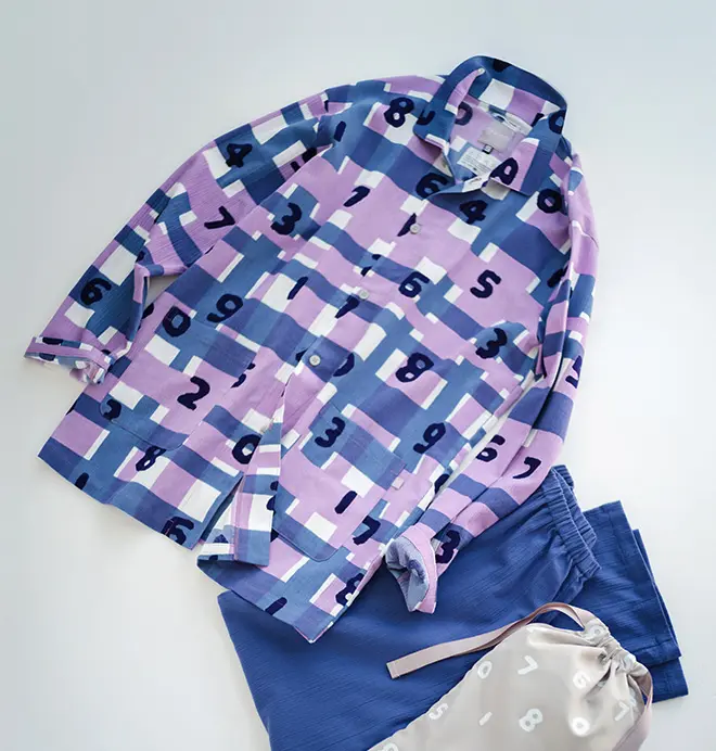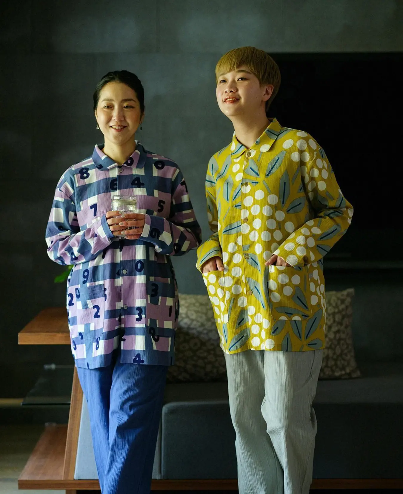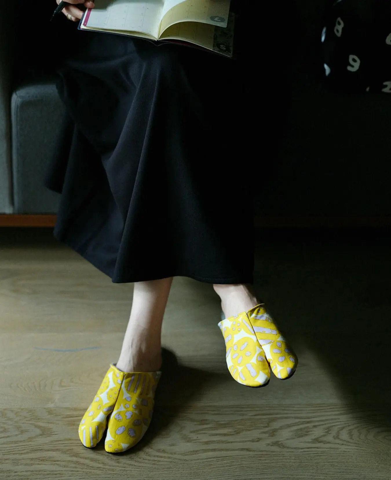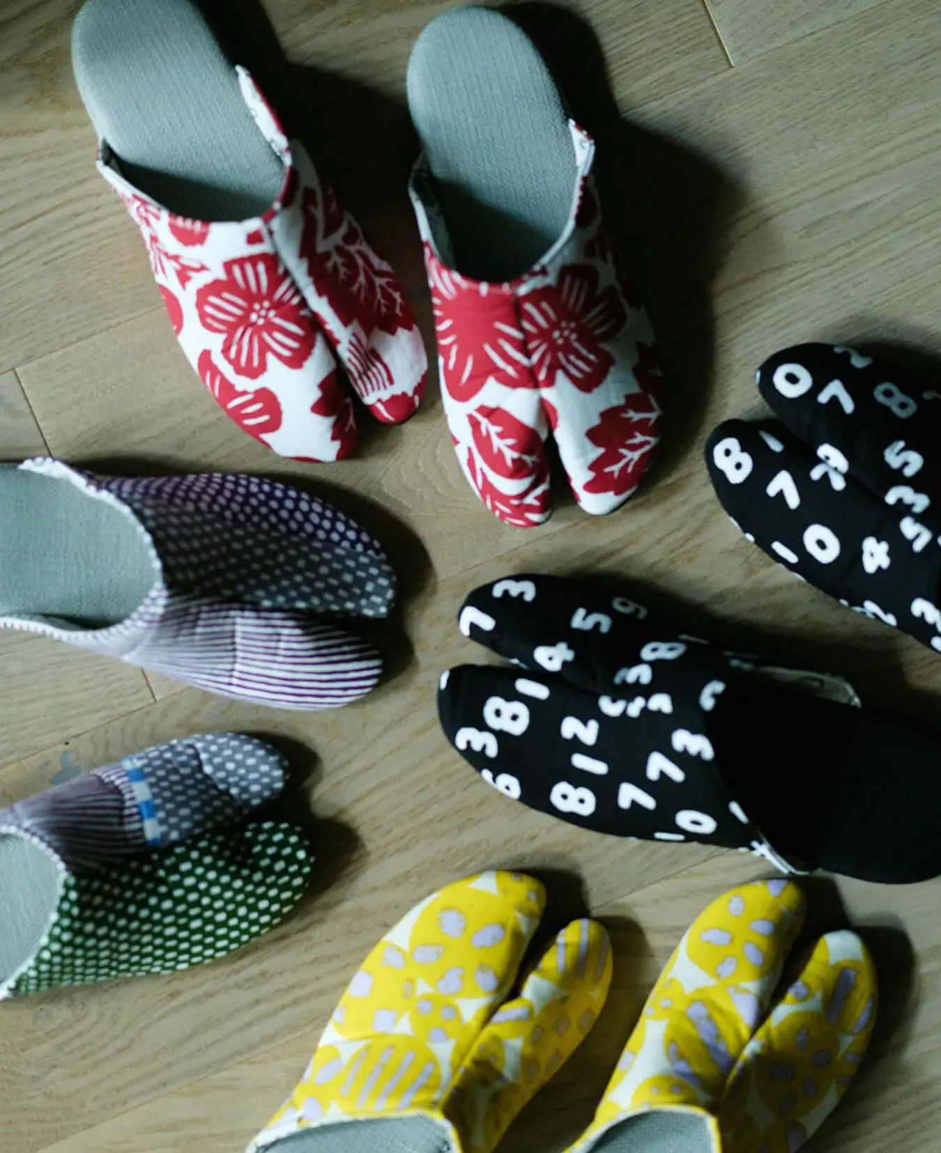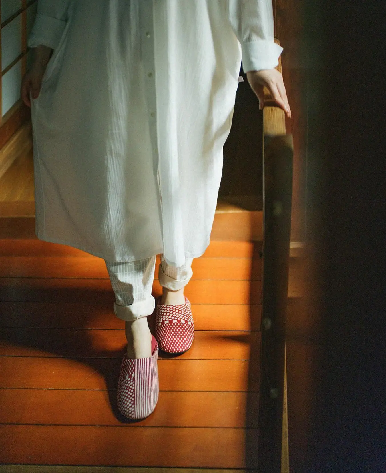 くつろぎのおうち時間。ルームウェアやスリッパなど。SOU・SOUのポップなテキスタイルでお家の中でも明るい気分で。