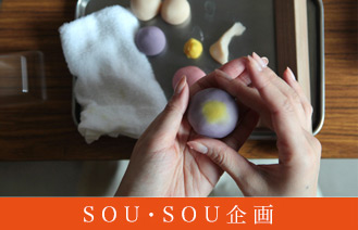 1803年の創業以来、伝統をふまえながら、新たな菓子制作へのチャレンジを続ける京菓子司・亀屋良長。この日は特別に、SOU・SOUへ菓子職人にお越しいただき、季節の和菓子をつくります。あんこの包み方、へらを使った成形など、和菓子づくりの基本となる作業を体験いただきます。