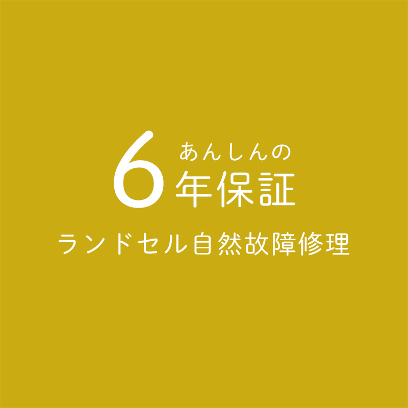 ランドセルを安心・安全にお使いいただけるよう『ランドセル6年保証』が付いています。
