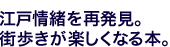 平蔵をはじめ登場人物が飲み食いする場面や場所が最大の魅力です。全巻から美味しいものを探し、登場する場所を実際に歩きながら江戸情緒を再発見、鬼平犯科帳ゆかりの地を市中見廻ることができる作品です。 |