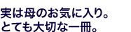 娘の目から見てそうとうララビアータな母がこの本が一番好きというのがとても笑えて大切な1冊です。 |