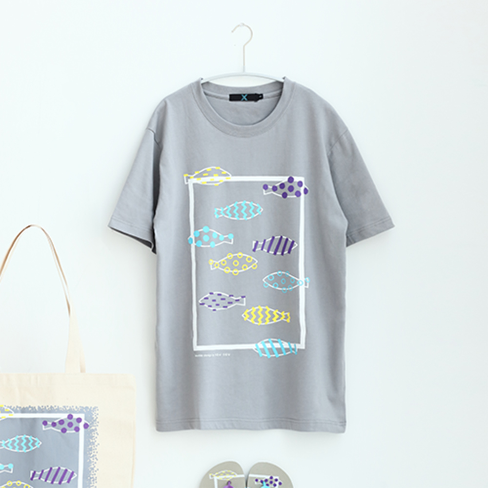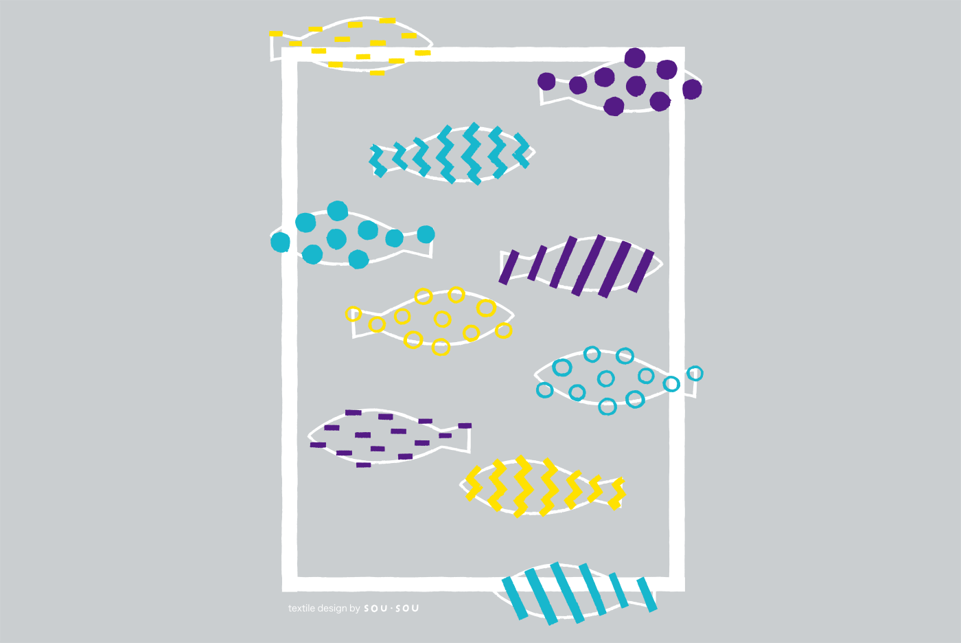 ミニマムな魚のフォルムに様々なデザイン要素を加え、水族館にいる多種多様な魚を再現。ベースカラーのグレーは、「都会的」「近未来的」なイメージを表すのに適した色として選びました。