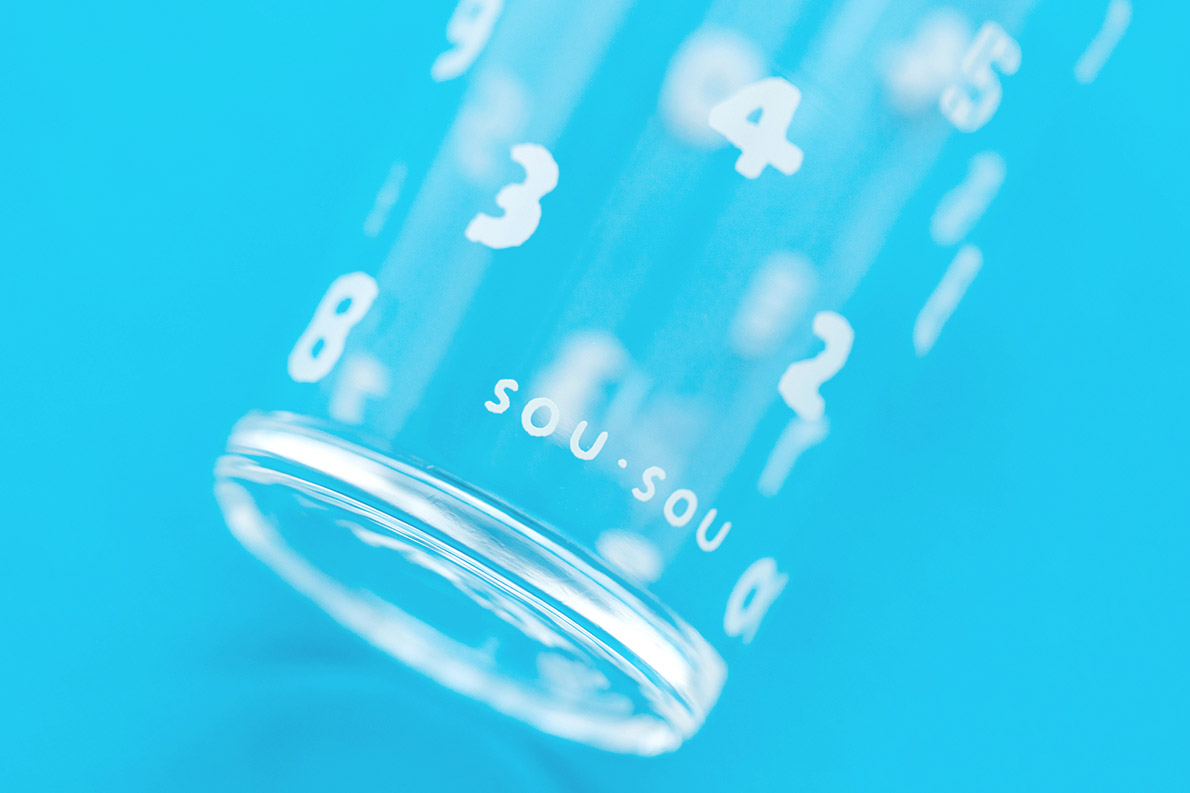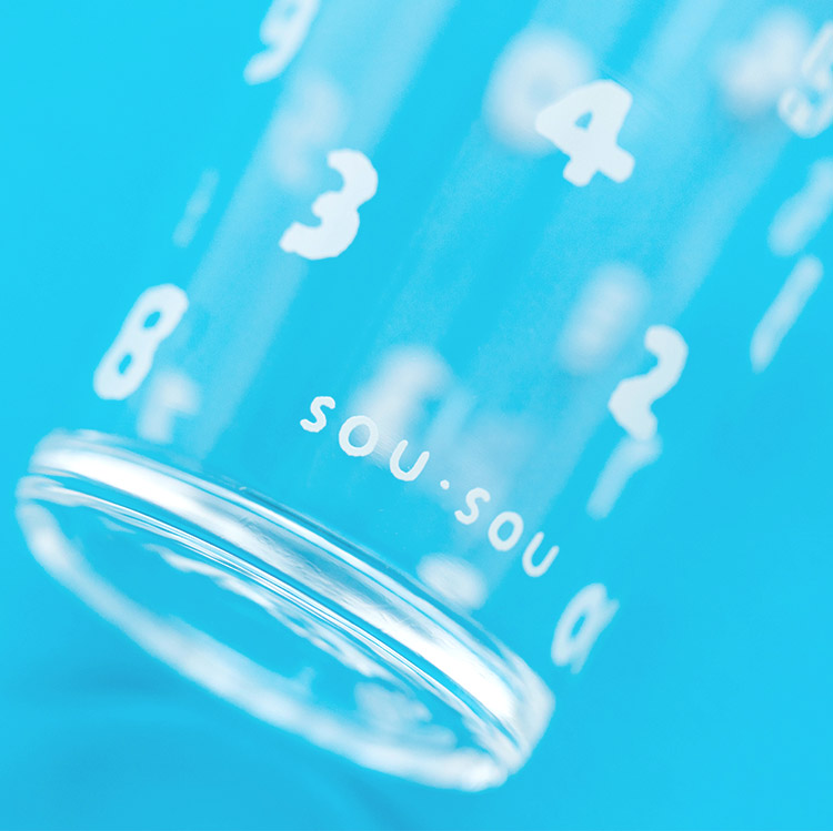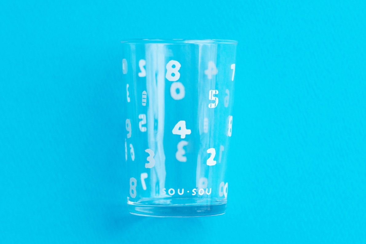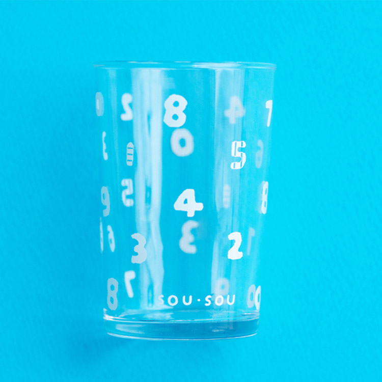 国産のグラスに、SO-SU-U柄(15周年仕様)の白プリントを施しております。
