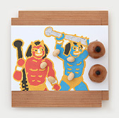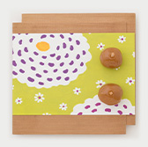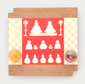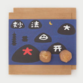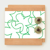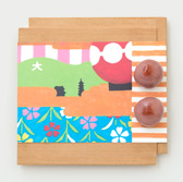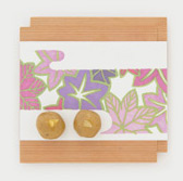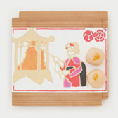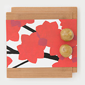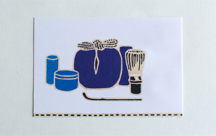 We serve a cup of green matcha tea (or choice of coffee) and our wagashi based on our textile design.