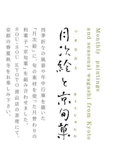 SOU・SOU KYOTO 青山店"では『京旬菓』とお抹茶(またはコーヒー)をお召し上がり頂けます。
