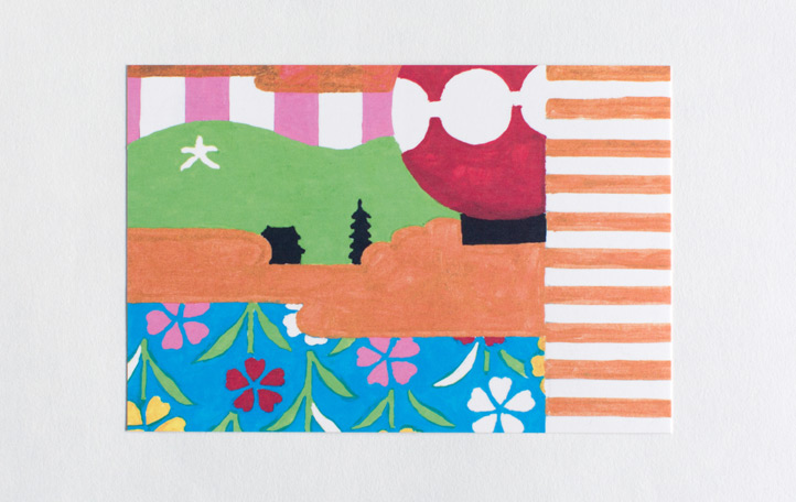 We serve a cup of green matcha tea (or choice of coffee) and our wagashi based on our textile design.
