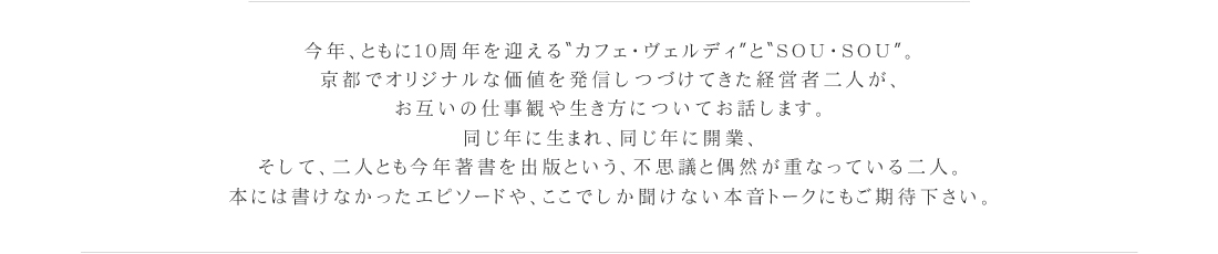 若林 剛之 / SOU・SOUプロデューサー http://www.sousou.co.jp/ 1967年 10月14日 京都生まれ 日本メンズアパレルアカデミーでオーダーメイドの紳士服を学んだ後、1987年 株式会社ファイブホックス入社。1993年まで企画パターンを担当する。 退社後、渡米。1994年に自身で買い付けをした商品を扱うセレクトショップをオープン。 以降、オリジナルブランドや複数の店舗を展開。 2003年、SOU・SOU をスタート。現在は、SOU・SOU のプロデューサーとして活動の場を広げている。 2008年京都造形大学準教授就任。 2011年名古屋芸術大学特別客員教授就任。 2013年(本年)『伝統の続きをデザインする』出版 |